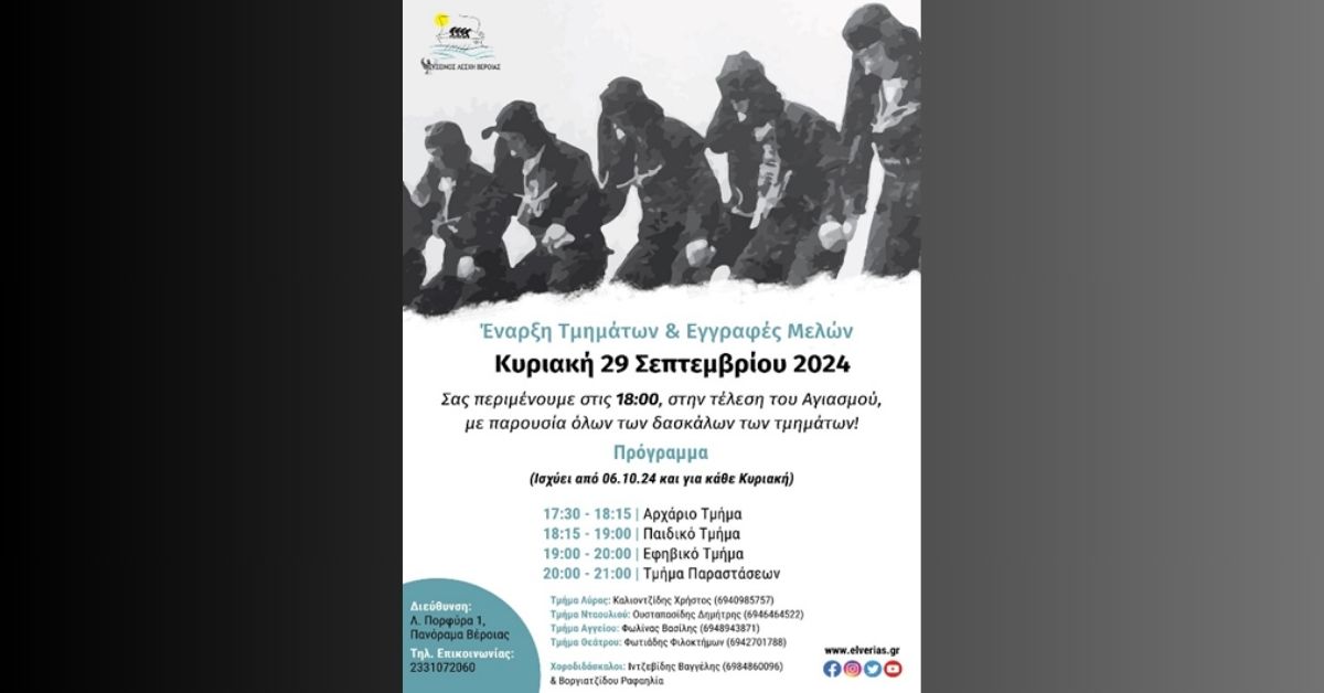 Ξεκινά η λειτουργία των τμημάτων της Ευξείνου Λέσχης Βέροιας – Στις 29/9 ο αγιασμός