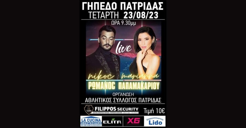 Verianet > News > Ατζέντα > Λαϊκή βραδιά στο γήπεδο Πατρίδας με Νίκο Ρωμανό και Μαριάννα Παπαμακαρίου (23/8/23)