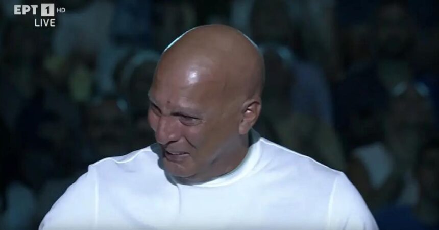 Τρομερά συγκινημένος ο «γκάνγκστερ», που αποθεώθηκε όταν η φανέλα του με την Εθνική και το νούμερο 4 αποσύρθηκε ανεβαίνοντας στην οροφή του ΟΑΚΑ.