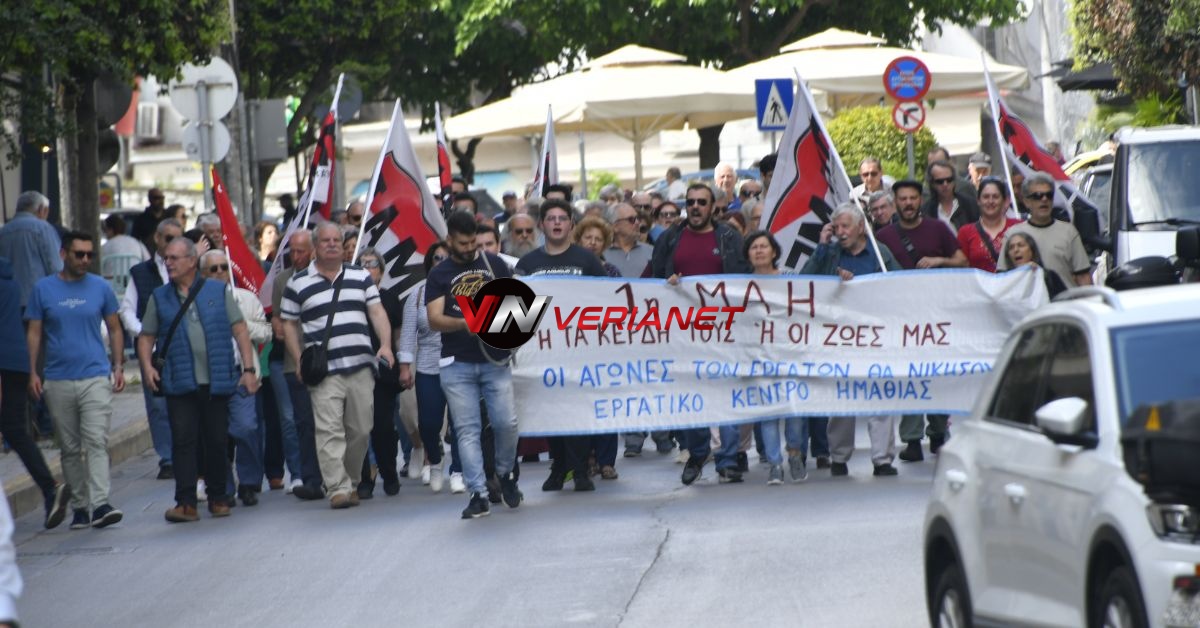 Στη Βέροια εργαζόμενοι του ιδιωτικού και δημόσιου τομέα τίμησαν την ηρωική εργατική Πρωτομαγιά διατρανώνοντας το σύνθημα ΤΑ ΚΕΡΔΗ ΤΟΥΣ Η ΟΙ ΖΩΕΣ ΜΑΣ και τον αγώνα ενάντια στην πολεμική εμπλοκή της χώρας μας στους πολέμους σε Ουκρανία και Μέση Ανατολή .