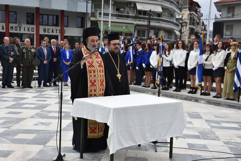 Το πρωί, διεξήχθη Δοξολογία στον Μητροπολιτικό Ναό της Μεταμορφώσεως του Σωτήρος και απόδοση τιμών από την Φιλαρμονική Εταιρεία Νάουσας και τον Στρατό, παρουσία των βουλευτών Ημαθίας κυρίων Απόστολου Βεσυρόπουλου, Βασιλείου Κοτίδη και Τάσου Μπαρτζώκα, του Αντιπεριφειάρχη Ημαθίας κ. Κώστα Καλαϊτζίδη, του Δημάρχου Νάουσας κ. Νίκου Κουτσογιάννη, Περιφερειακών Συμβούλων, Αντιδημάρχων, Δημοτικών Συμβούλων, Φορέων του Δήμου  και της Ημαθίας.