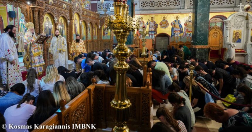 Στο τέλος της Θείας Λειτουργίας, κατά την οποία εκκλησιάστηκε πλήθος μαθητών, μαθητριών και γονέων, ο Σεβασμιώτατος Μητροπολίτης μας κ. Παντελεήμων ανέγνωσε ειδική ευχή και ευχήθηκε πατρικά σε όλους καλή επιτυχία αναφέροντας μεταξύ άλλων: Ὅπως κάθε χρόνο ἔτσι καί φέτος ἡ Ἐκκλησία μας ἀναγνωρίζοντας τήν ἀγωνία καί τήν ἀνησυχία σας γιά τίς ἐξετάσεις καί ἰδιαιτέρως γιά τίς Πανελλήνιες καί θέλοντας νά σᾶς συμπαρασταθεῖ ἀλλά καί νά σᾶς ἐνισχύσει καί νά σᾶς βοηθήσει στήν προσπάθειά σας, ἀφιέρωσε τήν ἑσπερινή αὐτή θεία λειτουργία εἰδικά γιά σᾶς, τούς μαθητές καί τίς μαθήτριες, πού θά διαγωνιστεῖτε αὐτές τίς ἡμέρες.