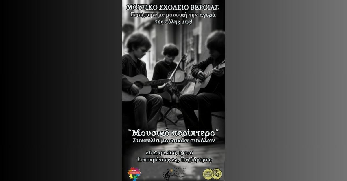 Γεμίζουμε με μουσική την αγορά της πόλης μας! Με αυτό το σύνθημα οι μαθητές του μουσικού σχολείο Βέροιας διοργανώνουν το φετινό τους μουσικό περίπτερο. 4 μουσικά γκρουπακια θα γεμίσουν με μουσική τον πεζόδρομο της Βέροιας την Παρασκευή, 26 Απριλίου.