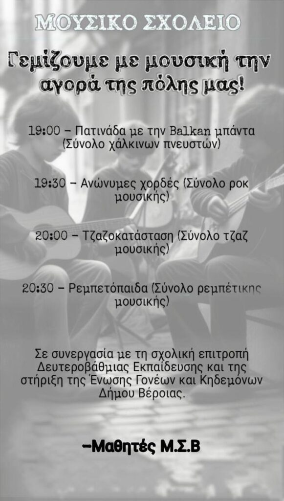 Μουσικό Σχολείο Βέροιας: Γεμίζουμε με μουσική τις αγορές της πόλης μας (26/4/24)