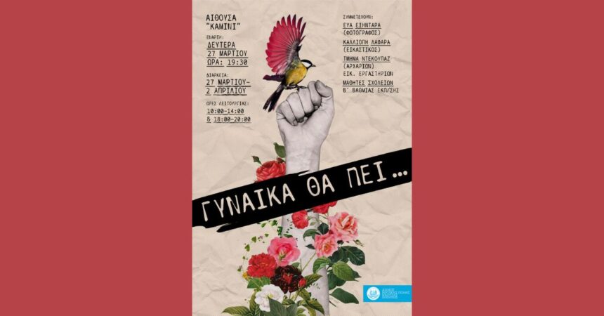 O Δήμος Ηρωικής Πόλης στο πλαίσιο των δράσεών του για τον Μάρτιο, μήνα αφιερωμένο στη γυναίκα, διοργανώνει την εικαστική έκθεση “Γυναίκα θα πει…” στην αίθουσα “Καμίνι” από σήμερα Δευτέρα 27 Μαρτίου έως και την Κυριακή 2 Απριλίου 2023 με ελεύθερη είσοδο για το κοινό.