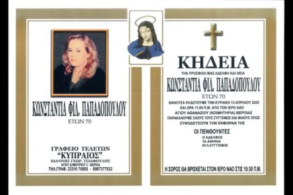 Έφυγε από τη ζωή η Κωνσταντία Παπαδοπούλου