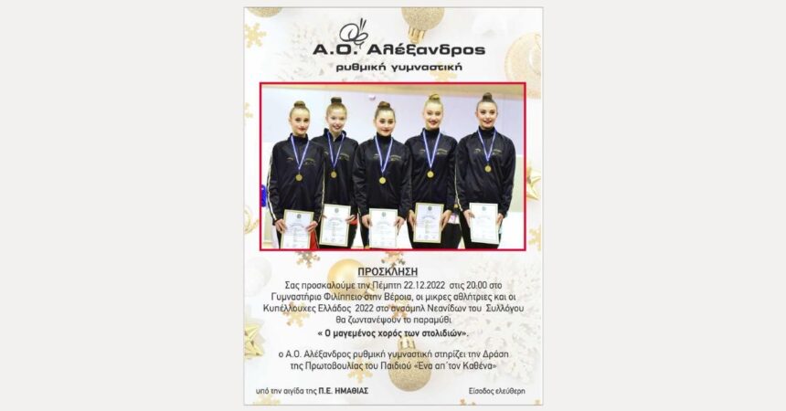 “Ο μαγεμένος χορός των στολιδιών” την Πέμπτη 22.12.2022 στο Φιλίππειο Γυμναστήριο.