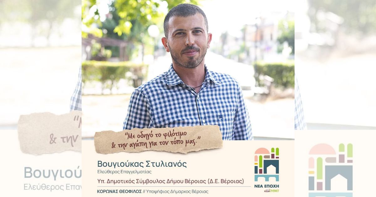 Ο Στέλιος Βουγιούκας κατεβαίνει Υποψήφιος Δημοτικός Σύμβουλος Βέροιας με τον Συνδυασμό “ΝΕΑ ΕΠΟΧΗ αλλάζουμε” του υπ. Δημάρχου Βέροιας Θεόφιλου Κορωνά.