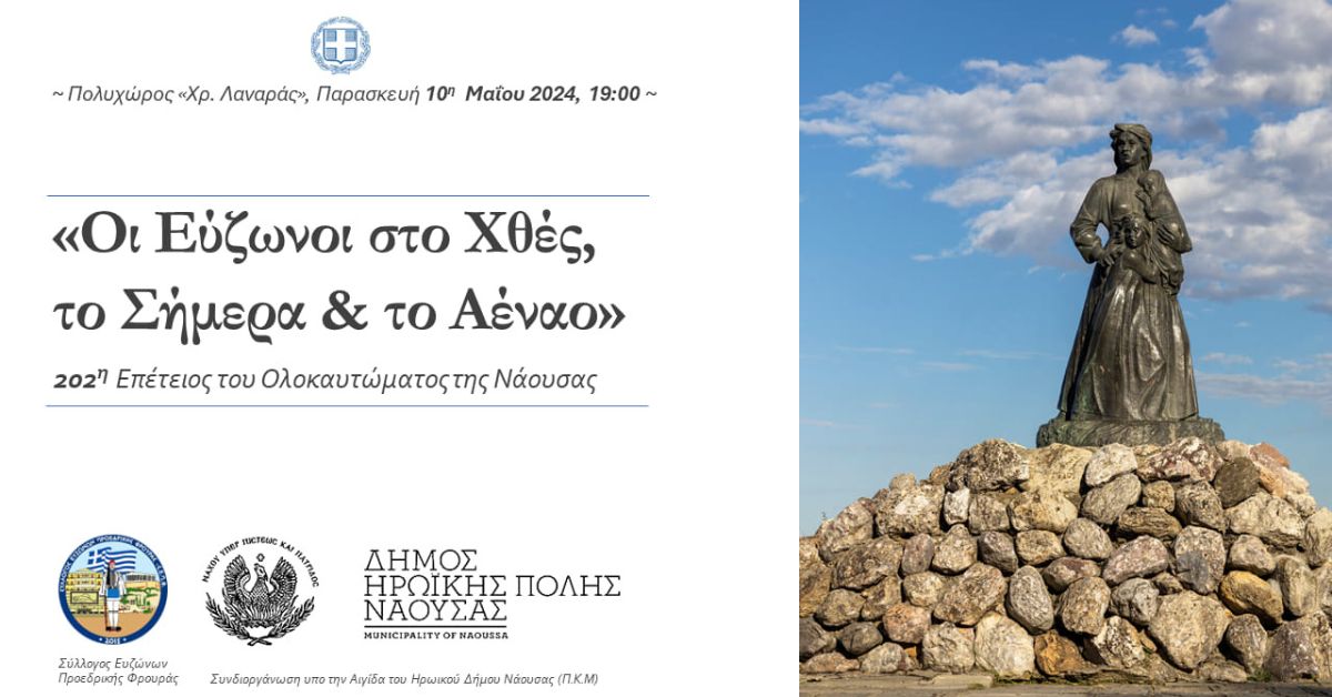 Ο Σύλλογος Ευζώνων Προεδρικής Φρουράς, σε αγαστή συνεργασία με τον Δήμο Ηρωικής Πόλης Νάουσας, με μεγάλη Τιμή και  Περηφάνια, θα παραστεί για 1η φορά στα πλαίσια του 3ημέρου εκτενούς Εορτασμού του 202ου Ολοκαυτώματος στις 10-12 Μαΐου, τιμώντας το ένδοξο παρελθόν του τόπου.