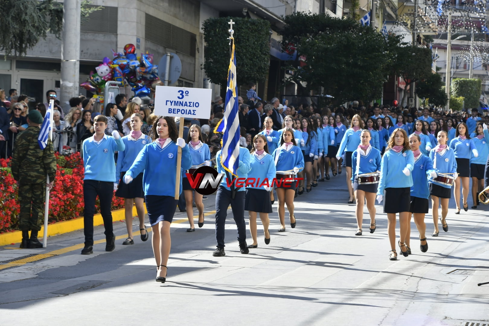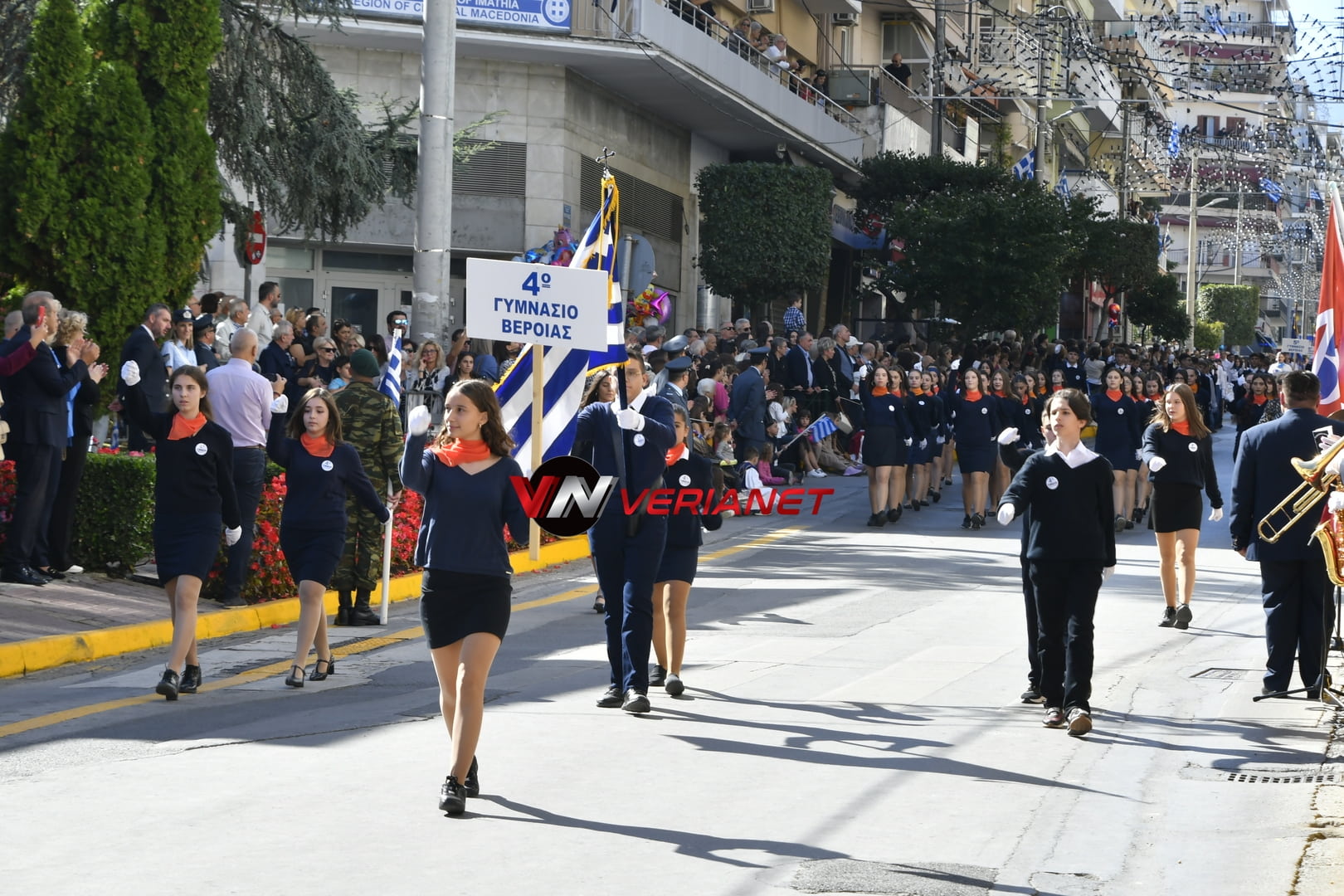 Ο εορτασμός επετείου της Απελευθέρωσης της Βέροιας συνεχίστηκε με την καθιερωμένη παρέλαση προ του Λαού και των Επισήμων, των αναπήρων πολέμου, μαθητών και μαθητριών των σχολείων, προσκόπων, με τις σημαίες τους, καθώς και τμημάτων Στρατού.