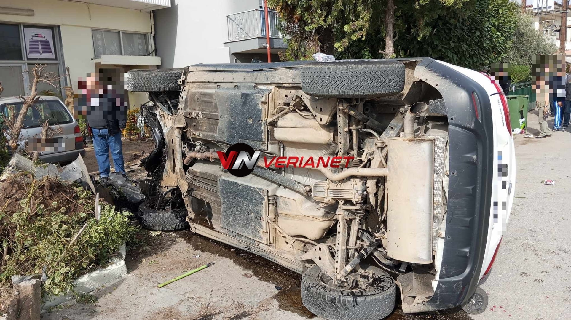 Μάλιστα από τη σφοδρότατη σύγκρουση, η μια γυναίκα, 68 ετών, απογειώθηκε κυριολεκτικά και περνώντας ανάμεσα από την πέργκολα παρακείμενης κατοικίας, προσγειώθηκε στο τσιμέντο της αυλής.