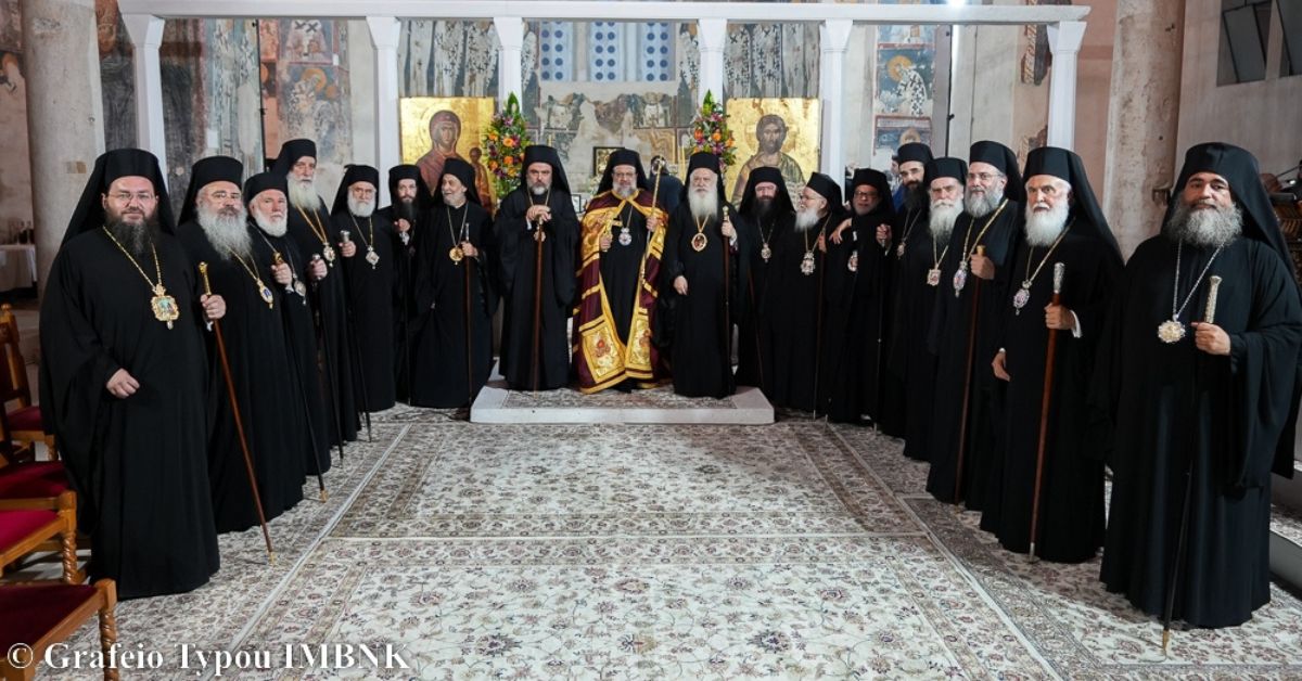 Συμμετείχαν επίσης οι Σεβασμιώτατοι Μητροπολίτες Σεβαστείας κ. Σεραφείμ, Ξάνθης και Περιθεωρίου κ. Παντελεήμων, Άρτης κ. Καλλίνικος, Τρίκκης, Γαρδικίου και Πύλης κ. Χρυσόστομος, Σισανίου και Σιατίστης κ. Αθανάσιος, Λήμνου και Αγίου Ευστρατίου κ. Ιερόθεος, Λαγκαδά, Λητής και Ρεντίνης κ. Πλάτωνας, Πολυανής και Κιλκισίου κ. Βαρθολομαίος, ο Θεοφιλέστατος Επίσκοπος Ευμενείας κ. Ειρηναίος και ο Ποιμενάρχης μας, Σεβασμιώτατος Μητροπολίτης Βεροίας, Ναούσης και Καμπανίας κ. Παντελεήμων, ο οποίος προσκάλεσε αδελφικά τους Αγίους Αρχιερείς για να συμμετάσχουν στην τελετή αναγνώσεως της Συνοδικής και Πατριαρχικής Πράξεως του πνευματικού του πατρός, Αγίου Γερασίμου του Υμνογράφου, που θα πραγματοποιηθεί αύριο κατά την Πολυαρχιερατική Θεία Λειτουργία.