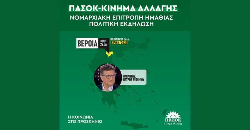 Πρόσκληση της Νομαρχιακής Επιτροπής ΠΑΣΟΚ-Κινήματος Αλλαγής Ημαθίας στην πολιτική εκδήλωση την Πέμπτη 22 Ιουνίου και ώρα 20:30 μ.μ. στον Πολυχώρο ΕΛΙΑ, Sala.