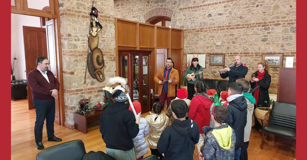 Τα Πρωτοχρονιάτικα κάλαντα στον Δήμαρχο έψαλλε και ο Σύλλογος «Πρωτοβουλία για το Παιδί», με τα παιδιά που φιλοξενούνται στην κοινωνική δομή να μεταφέρουν το πνεύμα αισιοδοξίας για το μέλλον.
