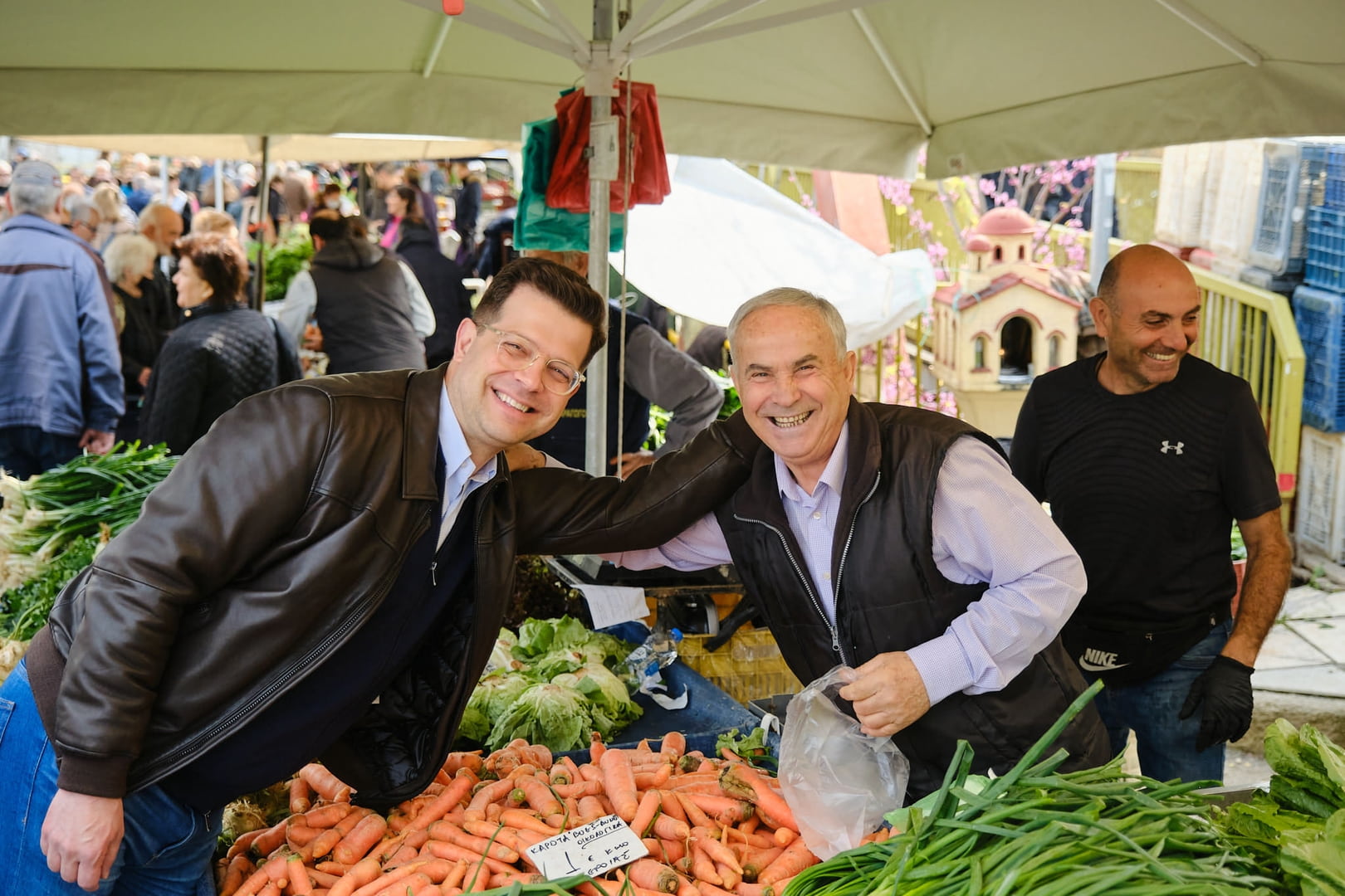Επιπλέον, σε επίσκεψή του στη λαϊκή αγορά της Βέροιας, ο βουλευτής Ημαθίας είχε την χαρά να ανταλλάξει θερμές ευχές ενόψει Πάσχα με εμπόρους και πολίτες ενώ του δόθηκε ευκαιρία να συζητήσει μαζί τους και για τις τρέχουσες εξελίξεις. Όπως διαπιστώνεται οι καταναλωτές περιγράφουν με ζοφερό τρόπο όσα βιώνουν καθημερινά, βλέποντας τη συρρίκωνση του εισοδήματός τους να αυξάνεται. Εμφανίζονται δε, προβληματισμένοι για την πορεία των πραγμάτων, τα κέρδη τους μειώνονται, τα κοστολόγια και τα έξοδα αυξάνονται αναμένοντας ως λύση πλέον την αλλαγή κυβέρνησης