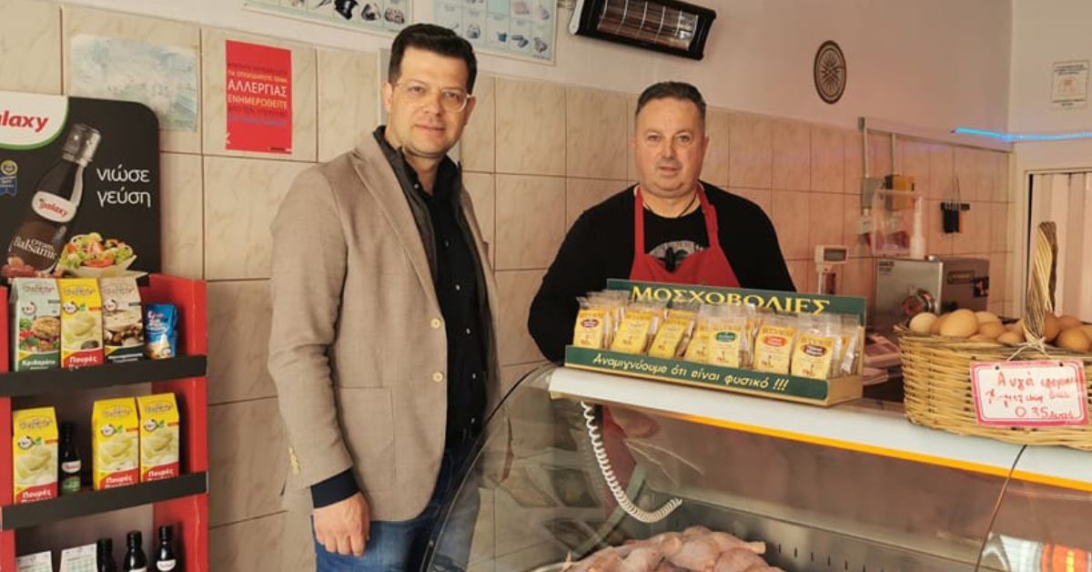 Συνάντηση Άγγελου Τόλκα με τον πρόεδρο κρεοπωλών Ημαθίας – Επισκέψεις στη λαϊκή αγορά της Βέροιας και σε καταστήματα της πόλης.