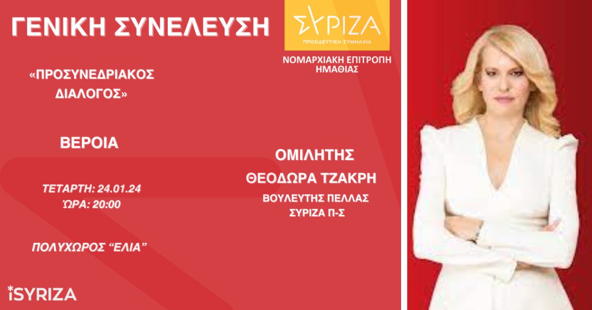 ΣΥΡΙΖΑ: Προσυνεδριακός διάλογος στη Βέροια με ομιλήτρια τη Θεοδώρα Τζάκρη (24/1/24)