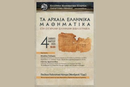 Εκδήλωση με τίτλο «Τα Αρχαία Ελληνικά Μαθηματικά στη σύγχρονη Ελληνική βιβλιογραφία» διοργάνωσε…