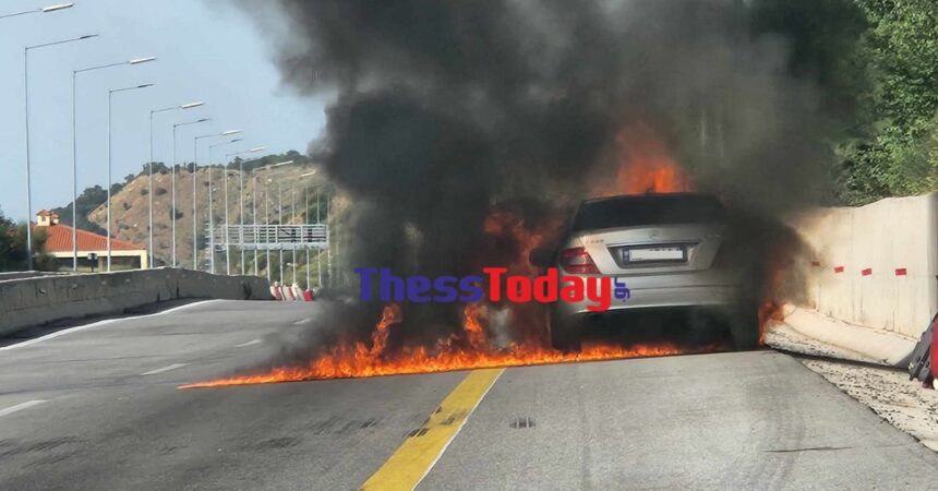 Φωτιά ξέσπασε σε ΙΧ στην Εθνική Οδό Βέροιας – Κοζάνης, με τον οδηγό να απομακρύνεται έγκαιρα από το όχημα.