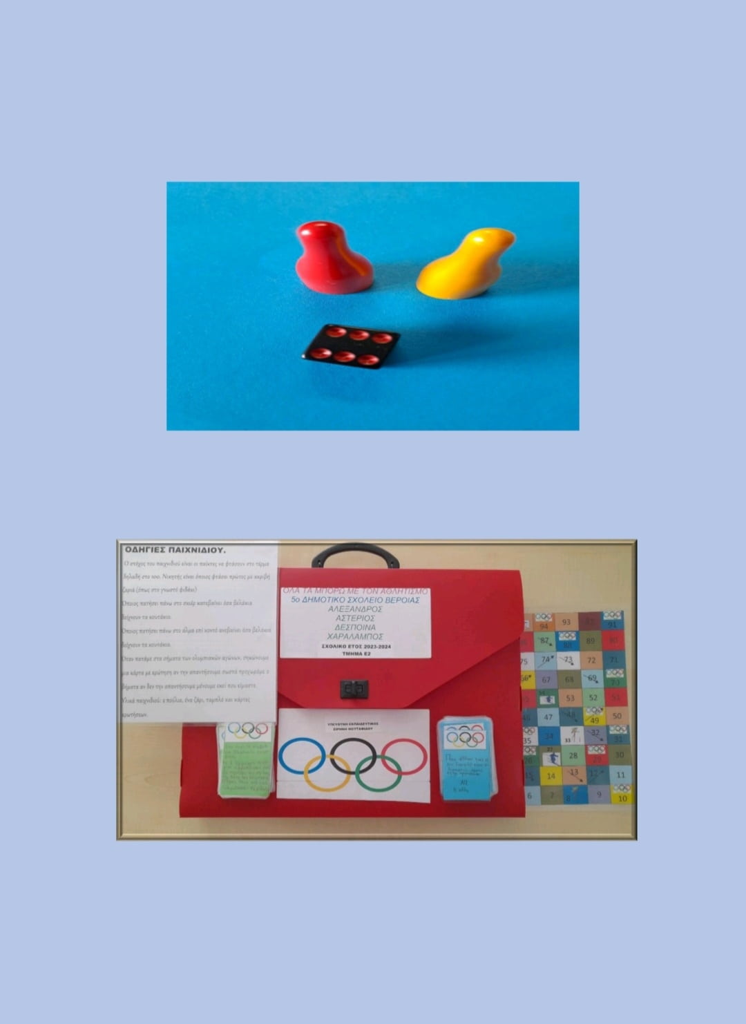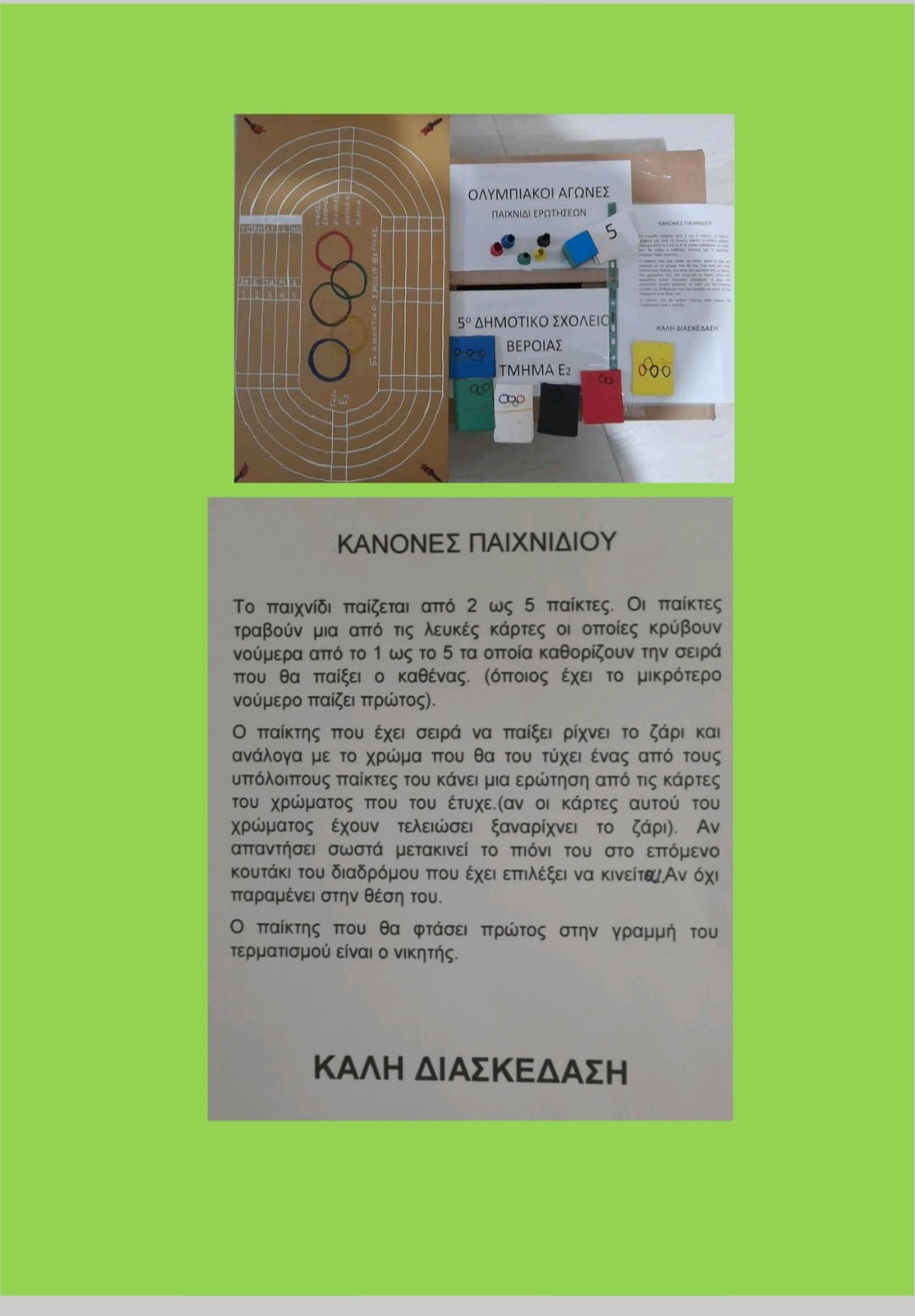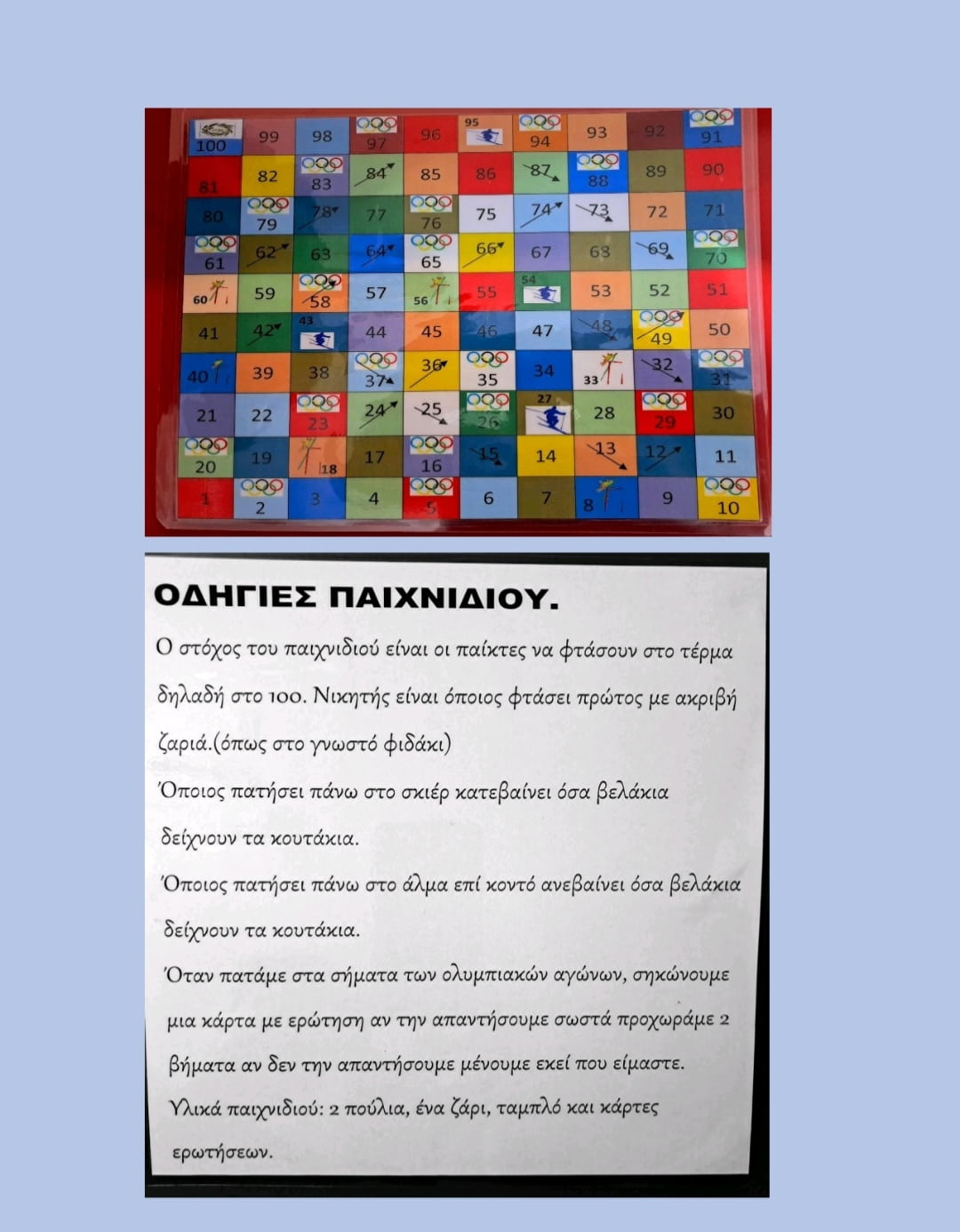 Ακολουθεί φωτογραφικό υλικό και από τα δύο επιτραπέζια παιχνίδια που δημιούργησαν τα παιδιά και φυσικά το βίντεο από το τραγούδι των μαθητριών μας που μας έφερε στην πρώτη θέση της κατηγορίας αυτής.”