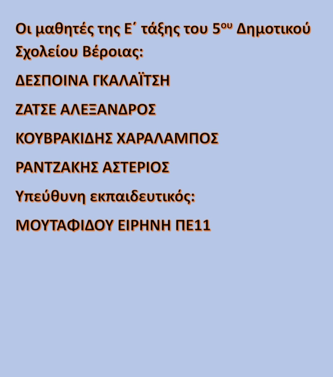 Την πρώτη θέση στον μαθηματικό διαγωνισμό “Pierre De Coubertin” κατέλαβαν οι μαθήτριες του Ε2 τμήματος του 5ου Δημοτικού Σχολείου Βέροιας