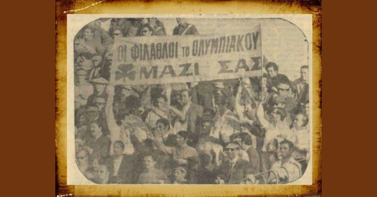 Κυκλοφορούσε τότε – μεταξύ άλλων – η αθλητική εφημερίδα «Ομάδα». Εξαιρετική εφημερίδα για την εποχή της. Με φωτογραφίες – ασπρόμαυρες εννοείται – και σκίτσα, έξυπνες γελοιογραφίες και πολύ ωραία άρθρα. Δημοσίευσε τότε ένα πανό από τις κατάμεστες κερκίδες της «Λεωφόρου» που έγραφε: «Παναθηναϊκέ Οι φίλαθλοι του Ολυμπιακού μαζί σου»!!!