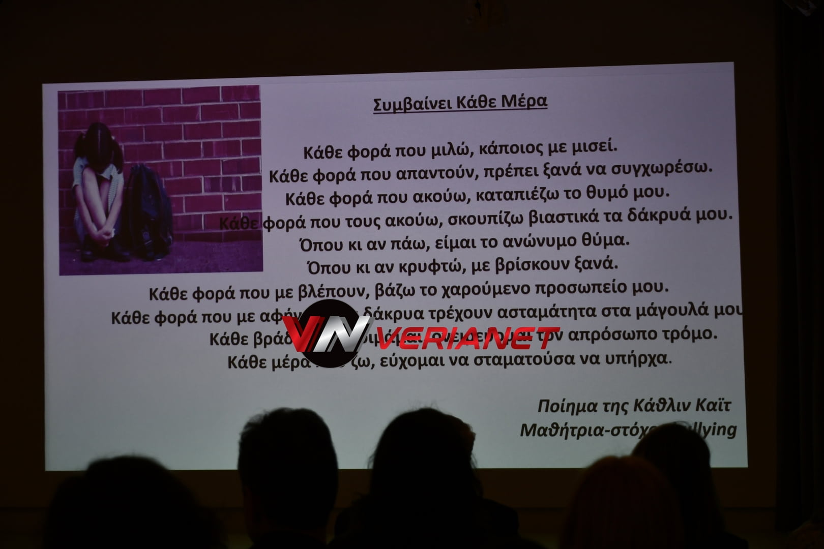 Ενημερωτική εκδήλωση με θέμα: “Αντιμετώπιση του σχολικού εκφοβισμού. Ανάπτυξη ενσυναίσθησης” διοργάνωσε το 3ο ΓΕΛ Βέροιας το απόγευμα της Δευτέρας 13/3 στη Δημόσια Κεντρική Βιβλιοθήκη Βέροιας.