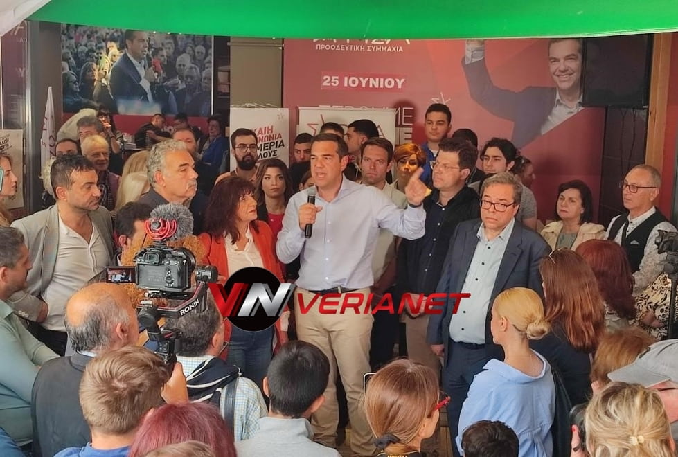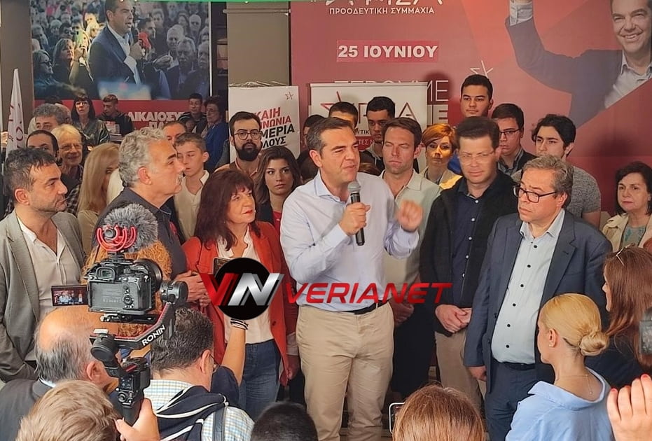 Το πρωί του Σαββάτου 17 Ιουνίου, ο κ. Τσίπρας έφτασε στη Βέροια, όπου έκανε ομιλία στο προεκλογικό κέντρο του ΣΥΡΙΖΑ.