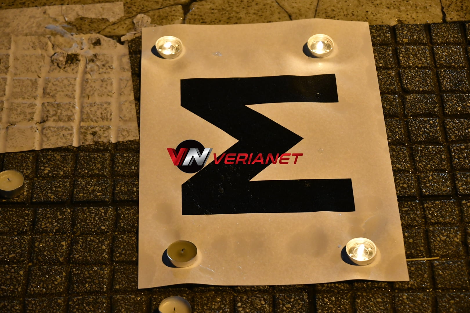 Στην πλατεία Δημαρχείου, σε χαρτιά Α4, έγραψαν «Έφτασες?» και γύρω – γύρω τοποθέτησαν αναμμένα κεριά.