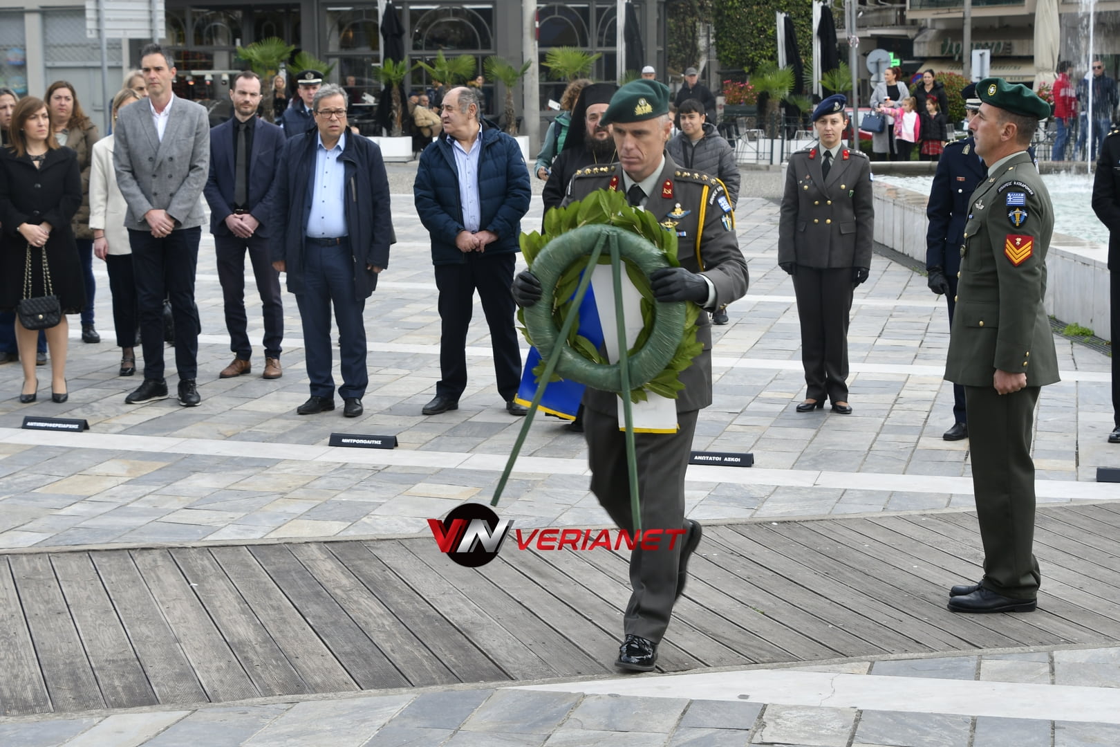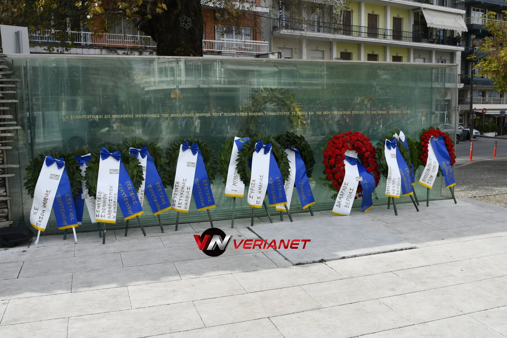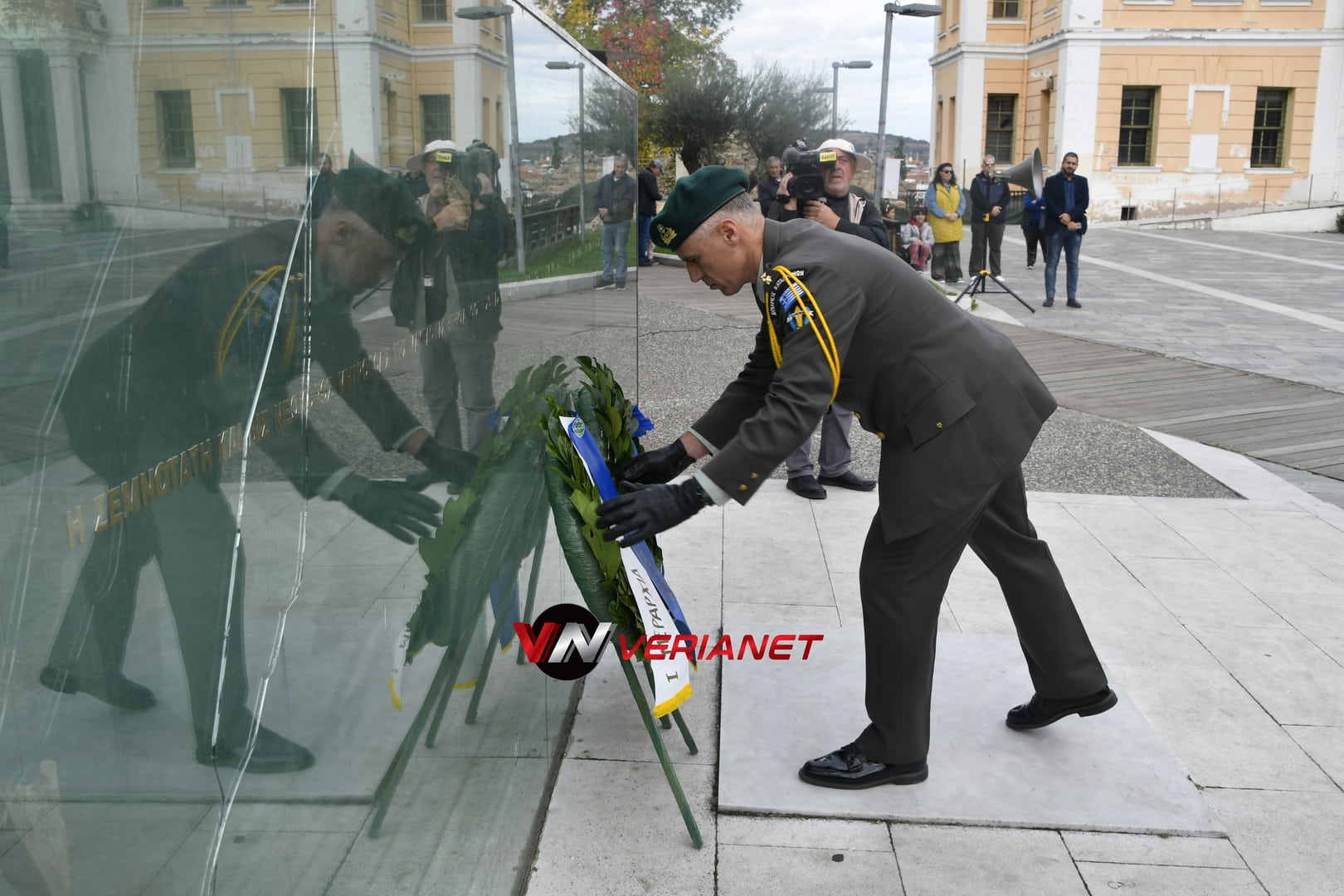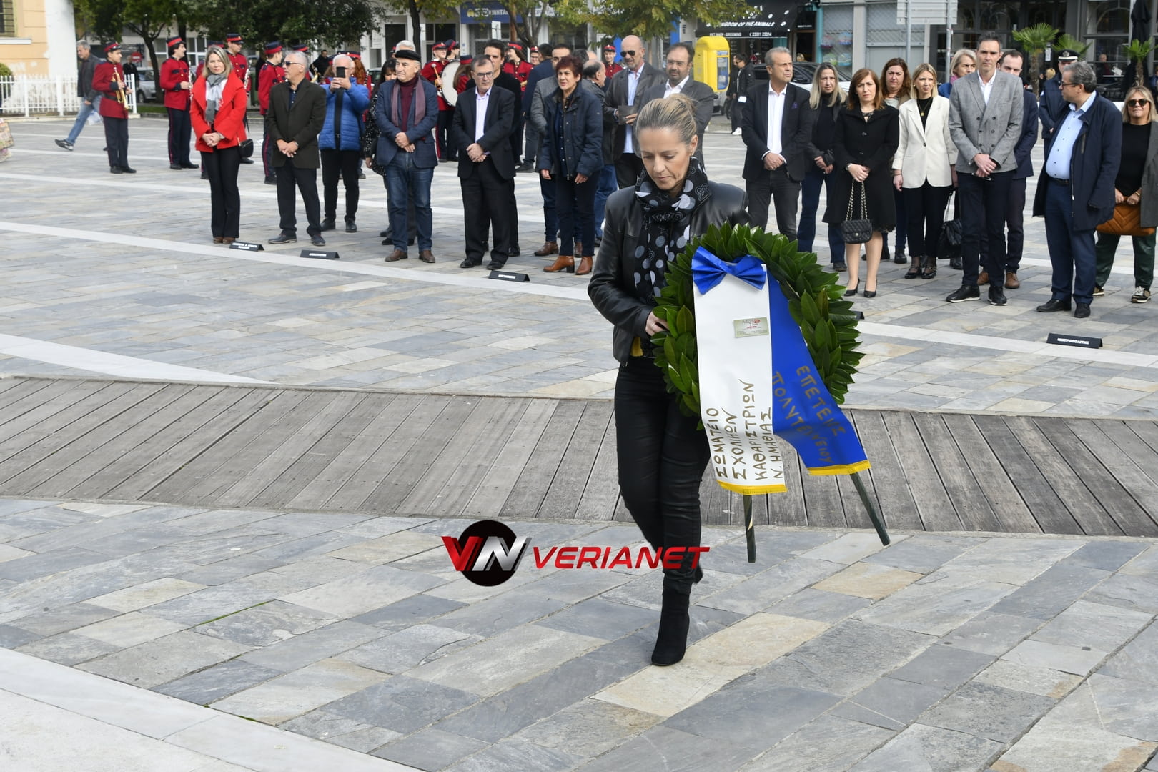 Στις 12 το μεσημέρι έγινε η προσέλευση των επισήμων στον χώρο του Ηρώου της πόλης στην πλατεία Ωρολογίου, όπου ακολούθησε επιμνημόσυνη δέηση από τον Αρχιμ. Σωφρόνιο Φάκα και κατάθεση στεφάνων.