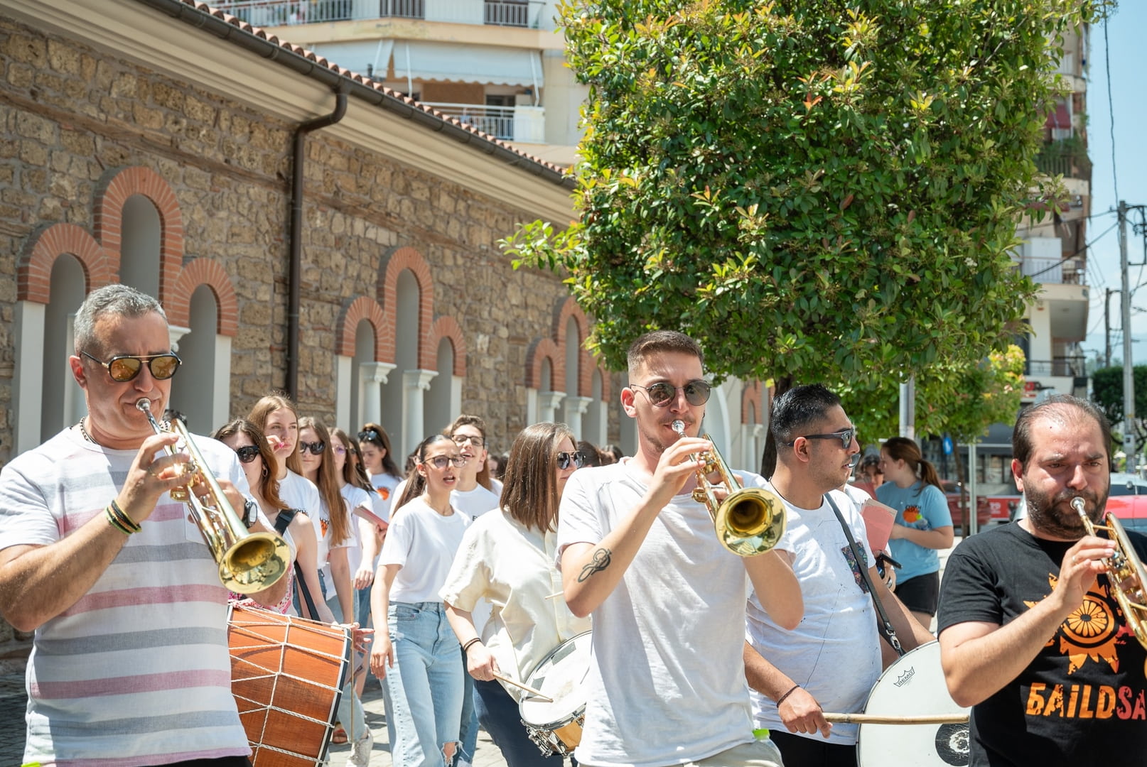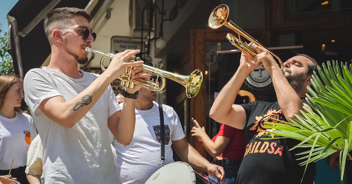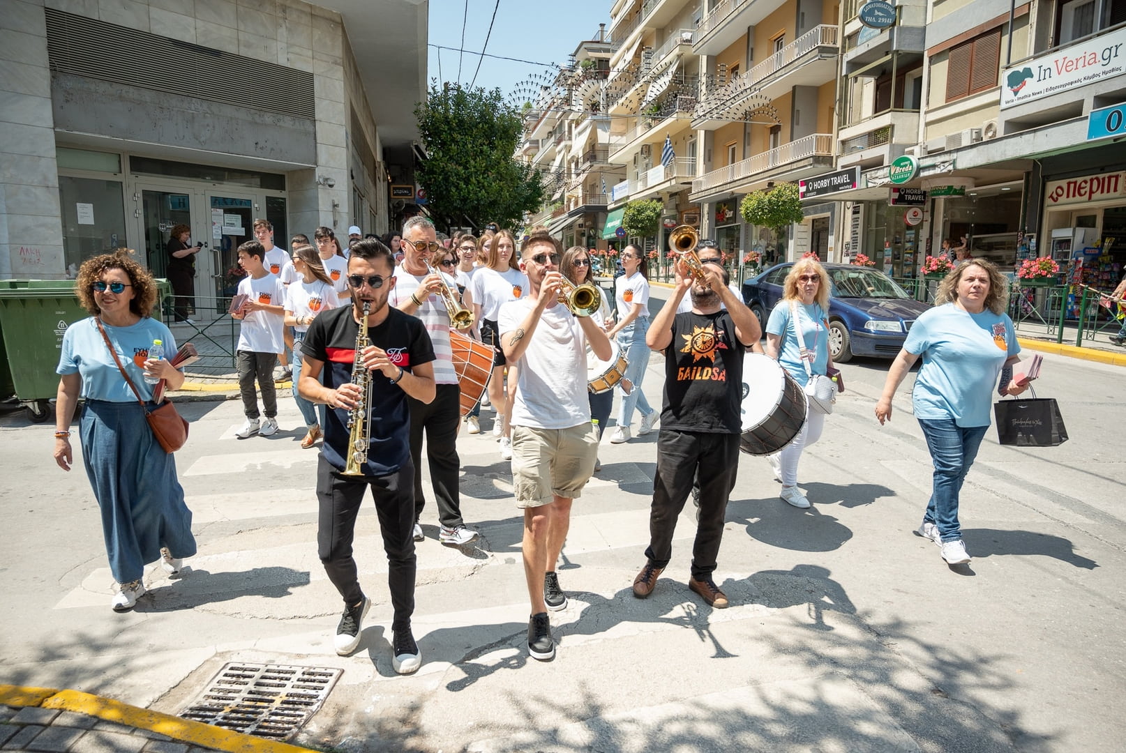 Με τρομπέτες, νταούλια, σαξόφωνο και τύμπανα “διελάλησαν” την έναρξη των εκδηλώσεων της Εύηχης Πόλης στους δρόμους της Βέροιας.