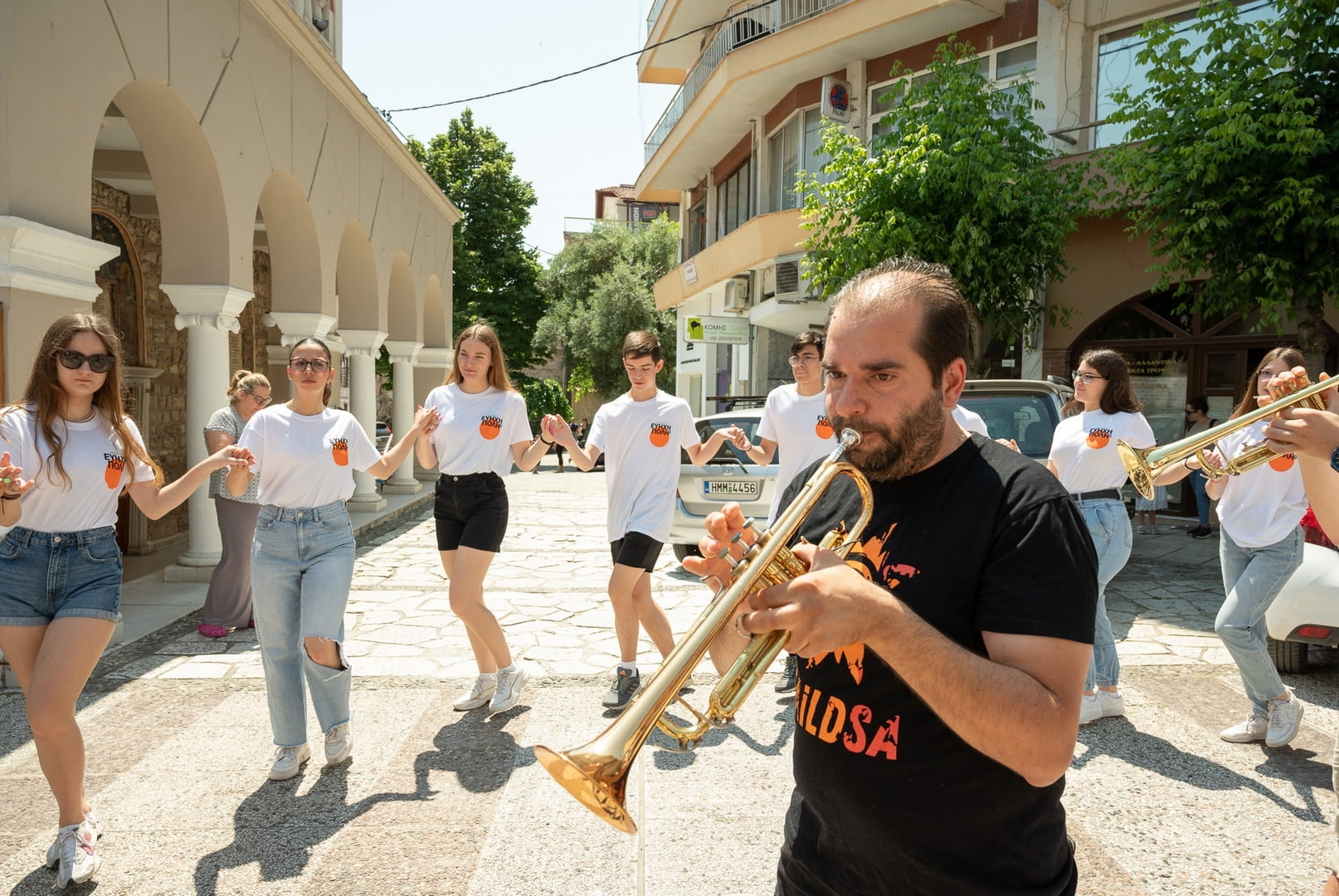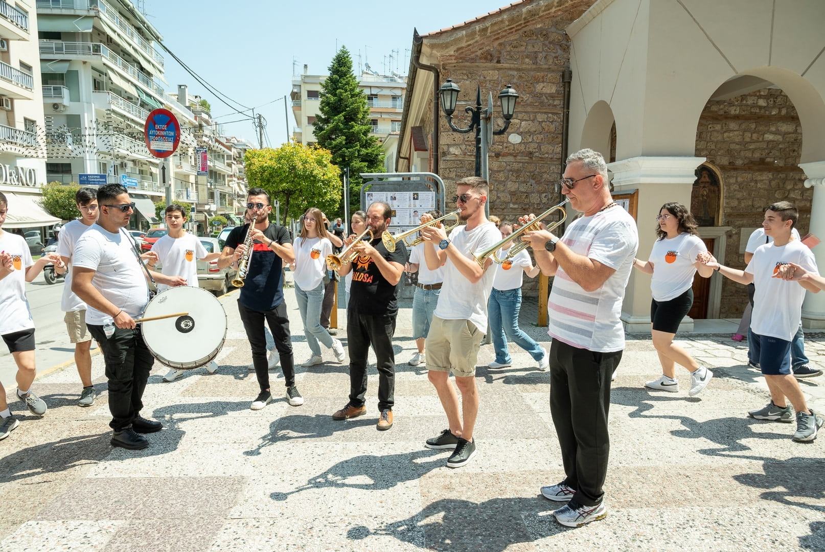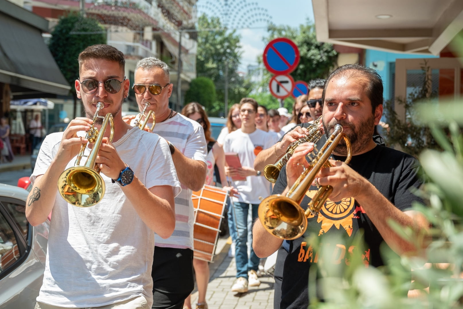 Με τρομπέτες, νταούλια, σαξόφωνο και τύμπανα “διελάλησαν” την έναρξη των εκδηλώσεων της Εύηχης Πόλης στους δρόμους της Βέροιας.