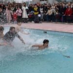 Τηρώντας το έθιμο, έντεκα νεαροί βουτηχτές έπεσαν στα παγωμένα νερά του ποταμού.