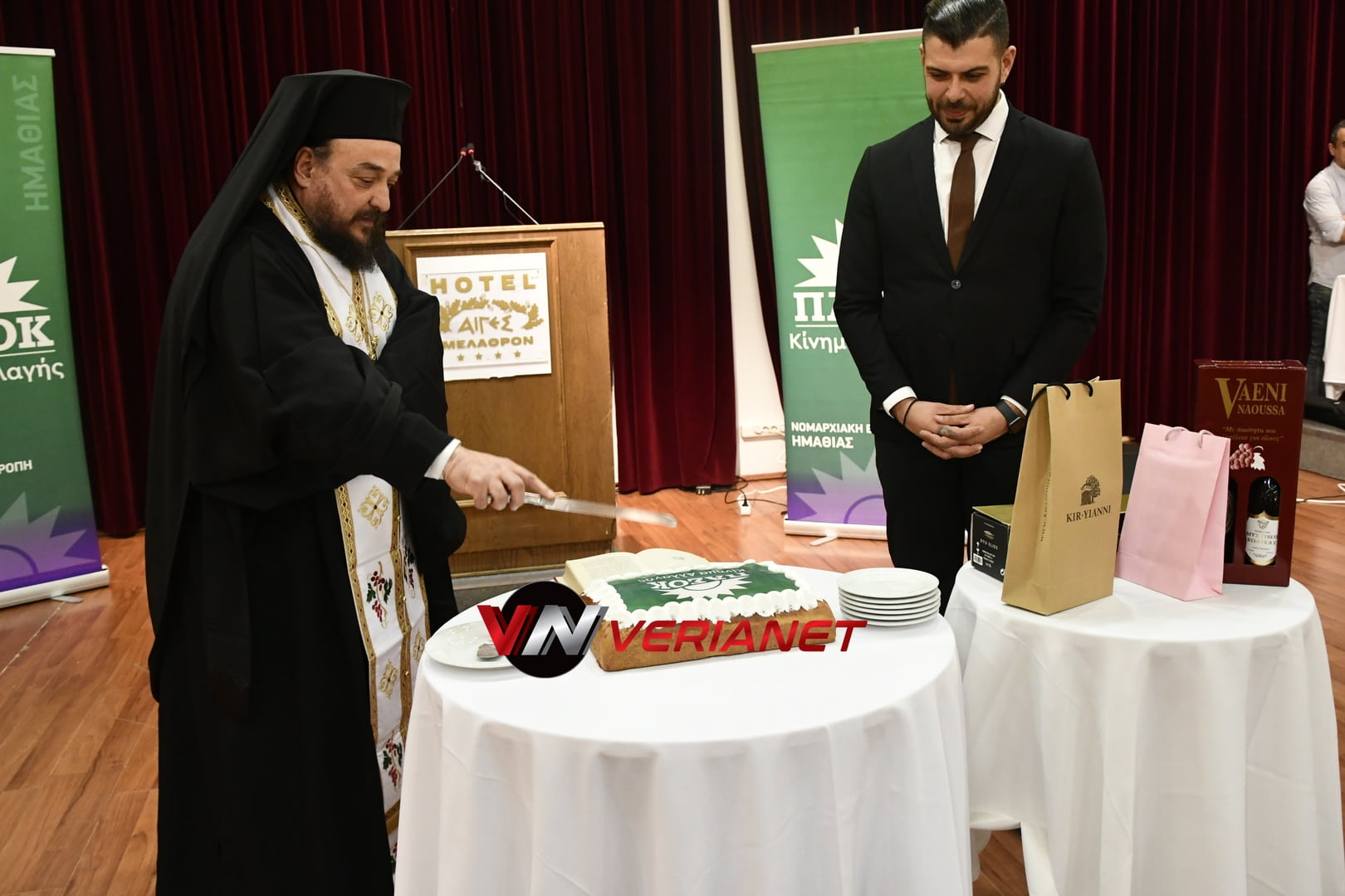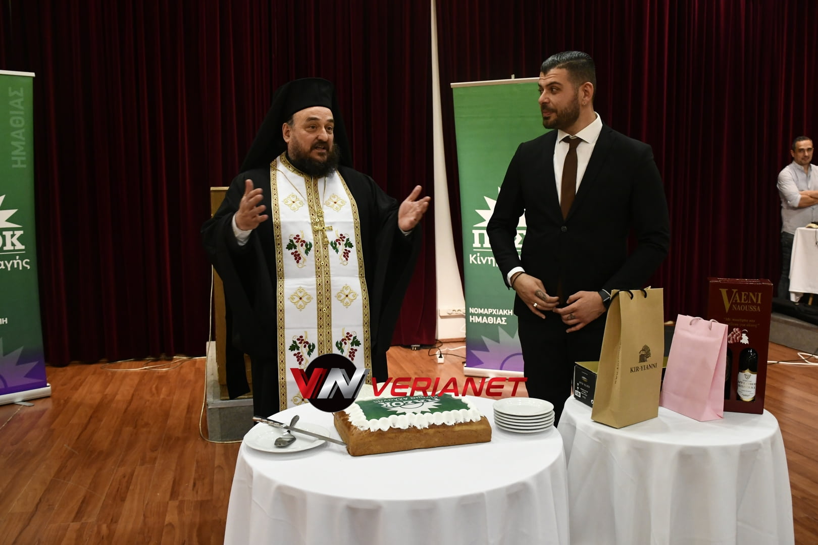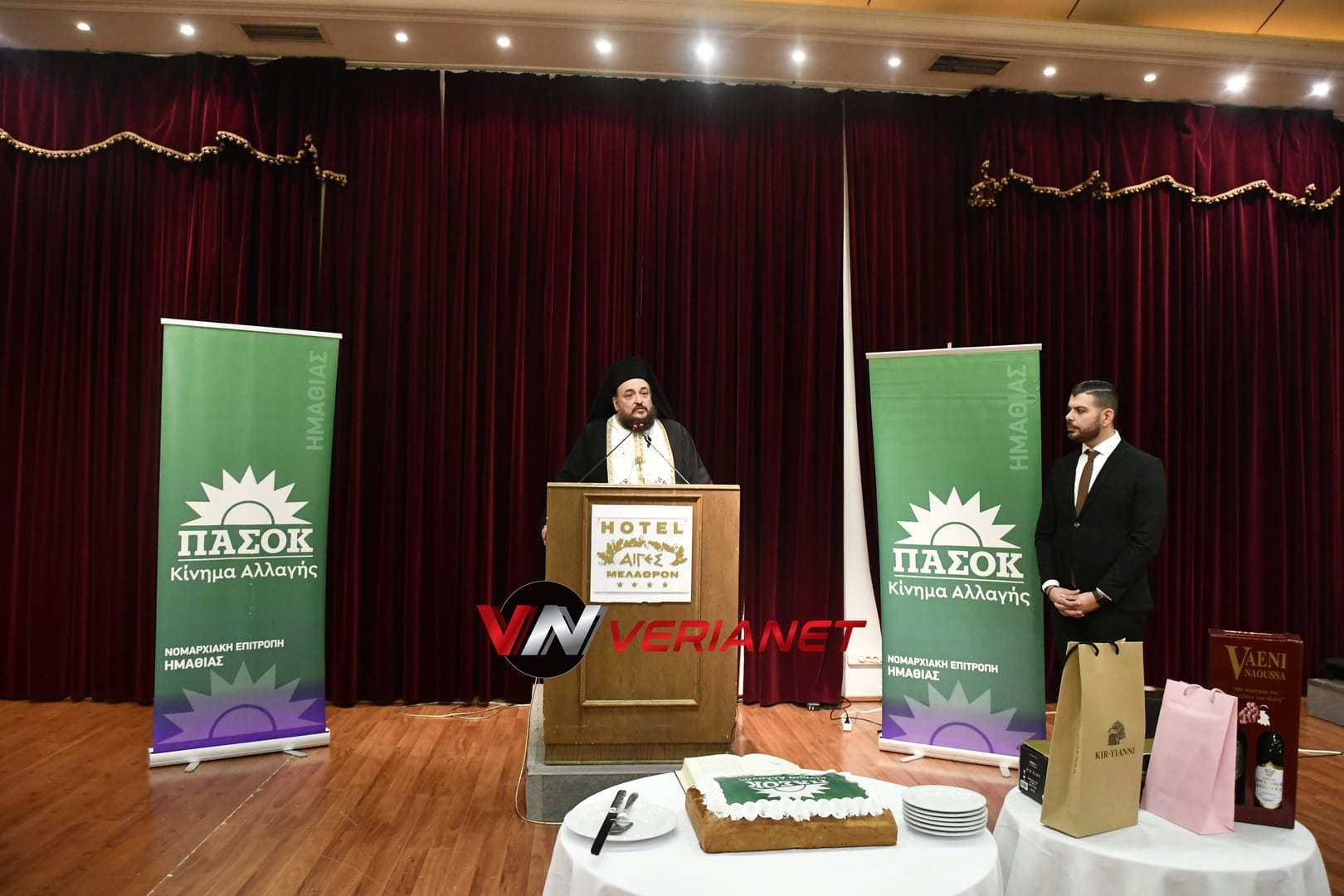 Η εκδήλωση κοπής της πίτας ξεκίνησε με την ευλογία του Αρχιμανδρίτη Σωφρόνιου και ακολούθησε σύντομος χαιρετισμός του Γραμματέα της Ν.Ε. ΠΑΣΟΚ Ημαθίας Σάββα Τσιχλακίδη, ο οποίος ευχαρίστησε τον κόσμο για την προσέλευσή του και κάλεσε τον κ. Μάντζο στο βήμα.