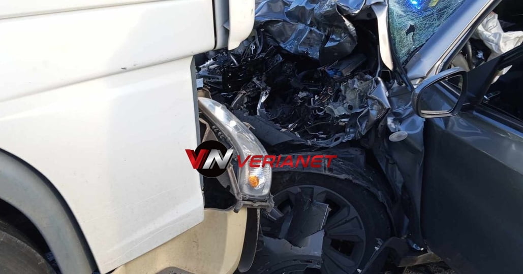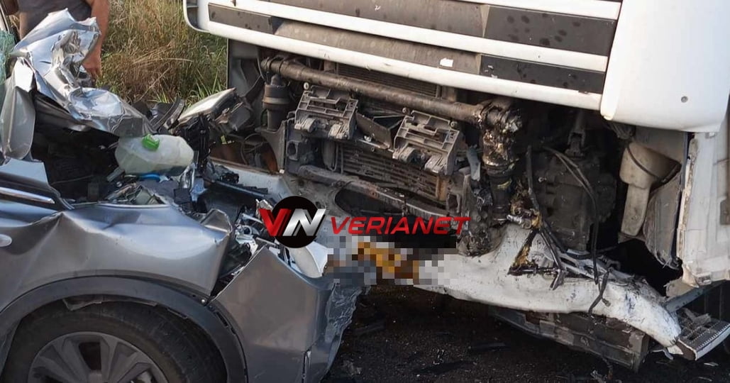 Ι.Χ. επιβατικό αυτοκίνητο με οδηγό και συνεπιβάτη, συγκρούστηκε μετωπικά με φορτηγό νταλίκα.