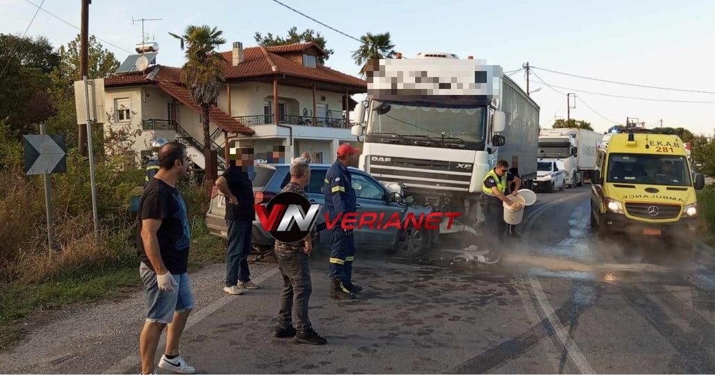 Σοβαρό τροχαίο σημειώθηκε το απόγευμα της Πέμπτης 12/9 στην Επαρχιακή Οδό Βέροιας – Νάουσας στην αρχή του χωριού Πατρίδα, λίγο πριν τη διασταύρωση για Τρίλοφο.
