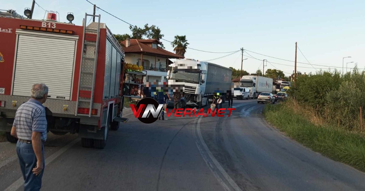 Σύμφωνα με τις πρώτες ενδείξεις και το σημείο που βρίσκονται τα δυο οχήματα, φέρεται ότι στο σημείο όπου υπάρχει κλειστή δεξιά στροφή, το Ι.Χ. με κατεύθυνση προς Νάουσα, εξετράπη από την πορεία του, μπήκε στο αντίθετο ρεύμα και συγκρούστηκε μετωπικά με την νταλίκα η οποία είχε κατεύθυνση προς Βέροια.