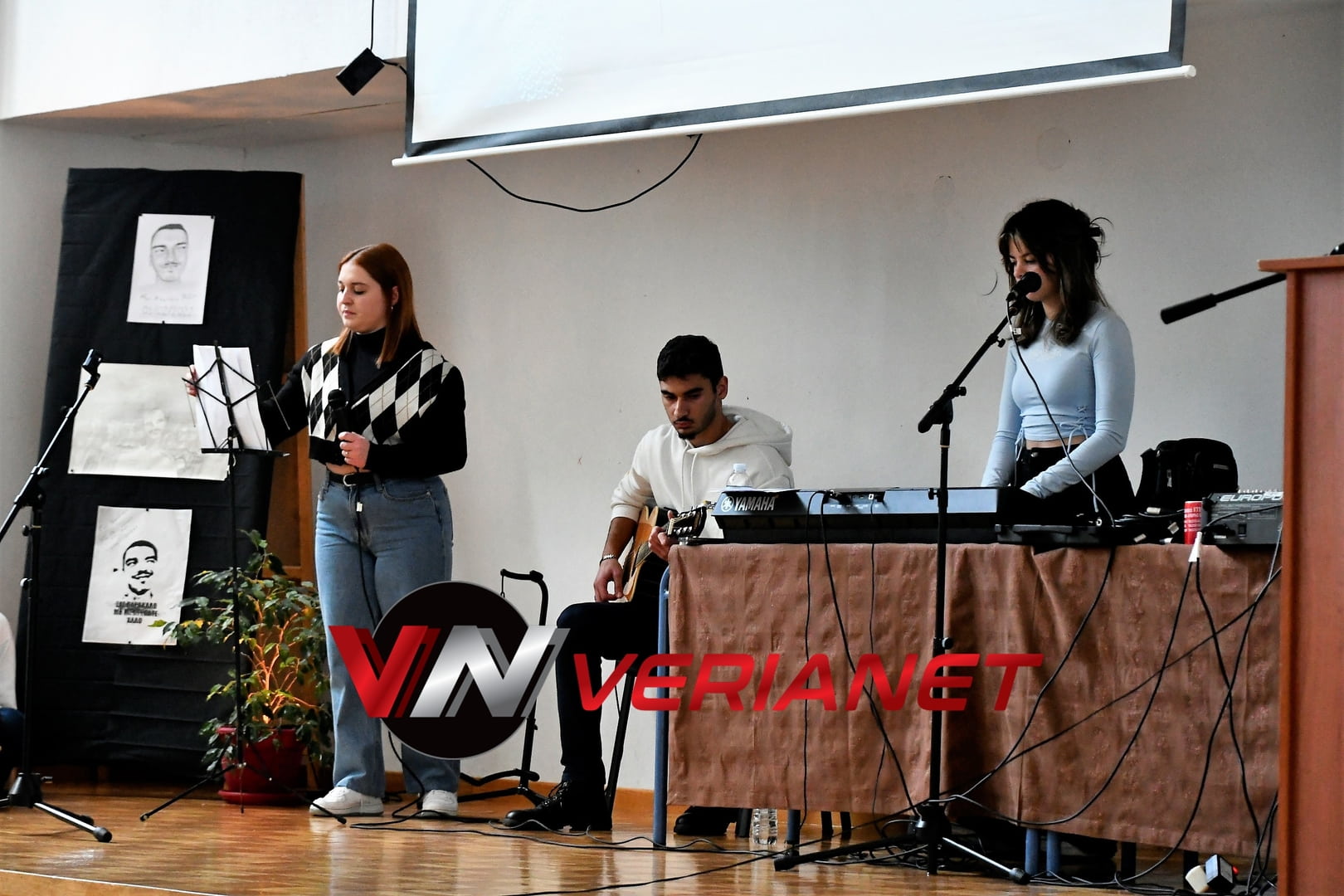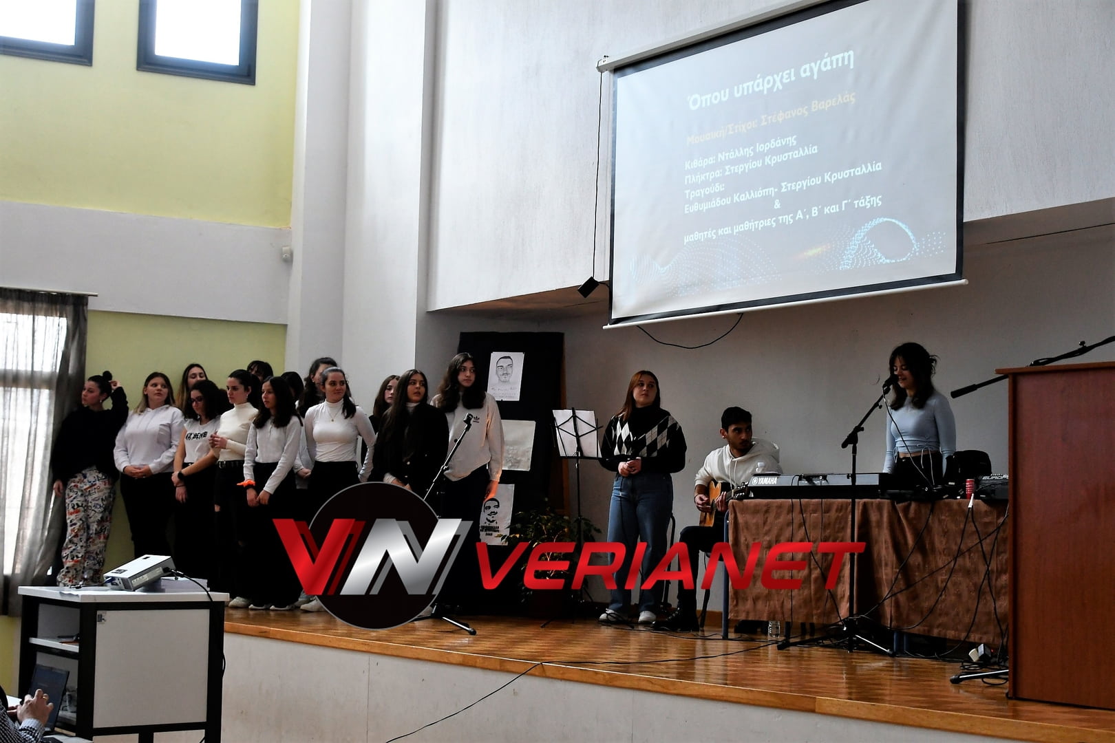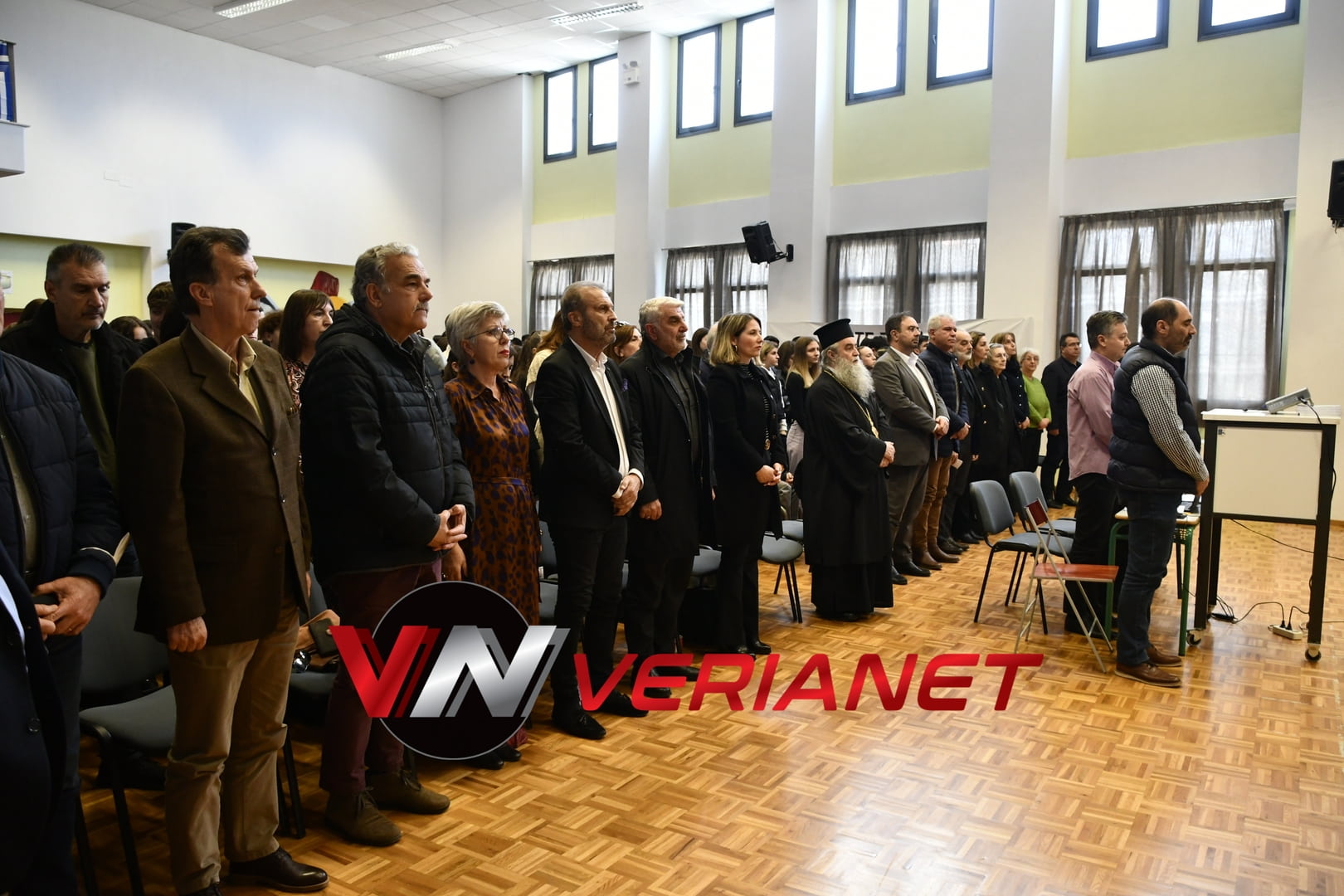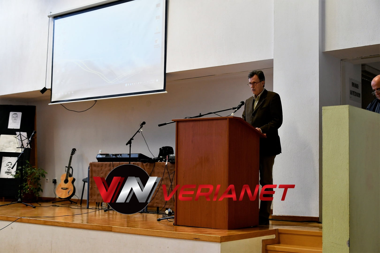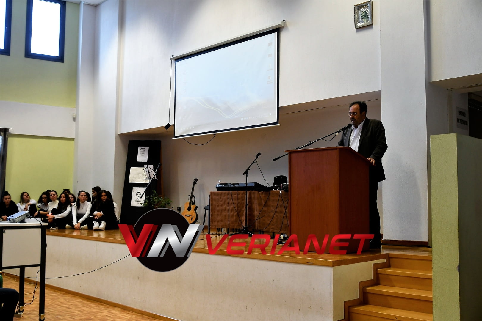 Σε μια αίθουσα συγκινητικά φορτισμένη, πραγματοποιήθηκε η εκδήλωση, με πανό κρεμασμένο με την αναγραφή «Ποτέ Ξανά.. Όλοι μαζί για έναν καλύτερο κόσμο» η οποία κοσμείται από μια τοιχογραφία graffitti από τον Βεροιώτη βραβευμένο καλλιτέχνη Θέμη Κωνσταντινόπουλο.
