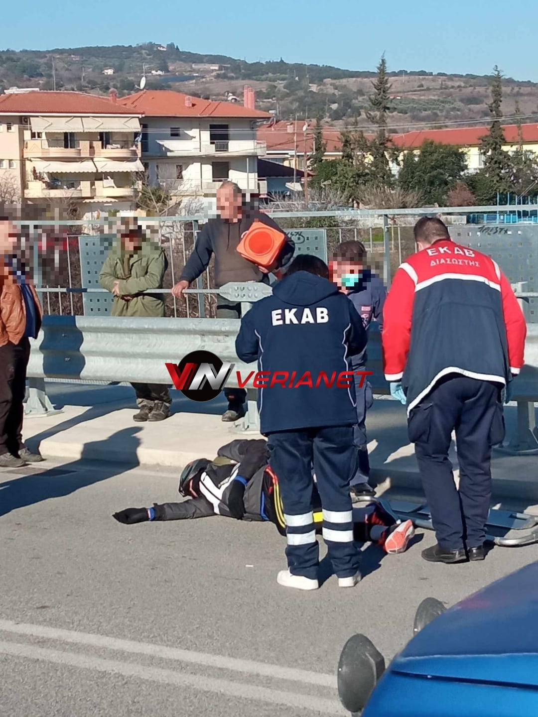 Στο σημείο έσπευσε ασθενοφόρο του ΕΚΑΒ το οποίο τον παρέλαβε και τον μετέφερε στο Νοσοκομείο Βέροιας.