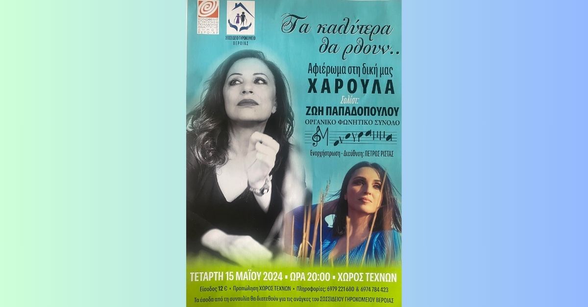 θΑ τραγουδήσουν για την Μ.Φ.Η. “Σωσσίδειο Γηροκομείο Βέροιας”, σε ένα αφιέρωμα στην μεγάλη μας ερμηνεύτρια Χάρις Αλεξίου!