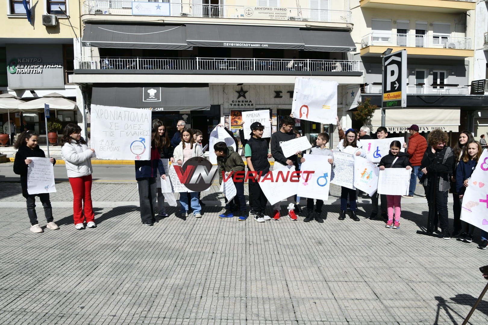 Το πρωί της Παρασκευής 8 Μαρτίου στην πλατεία Δημαρχείου μεταδόθηκε ένα ηχηρό μήνυμα αγώνα και αφύπνισης, για την ισότητα των φύλων και των δικαιωμάτων, με πρωταγωνιστές τους εκπαιδευτικούς και τους μαθητές σχολείων της Πρωτοβάθμιας και Δευτεροβάθμιας Εκπαίδευσης Ημαθίας.