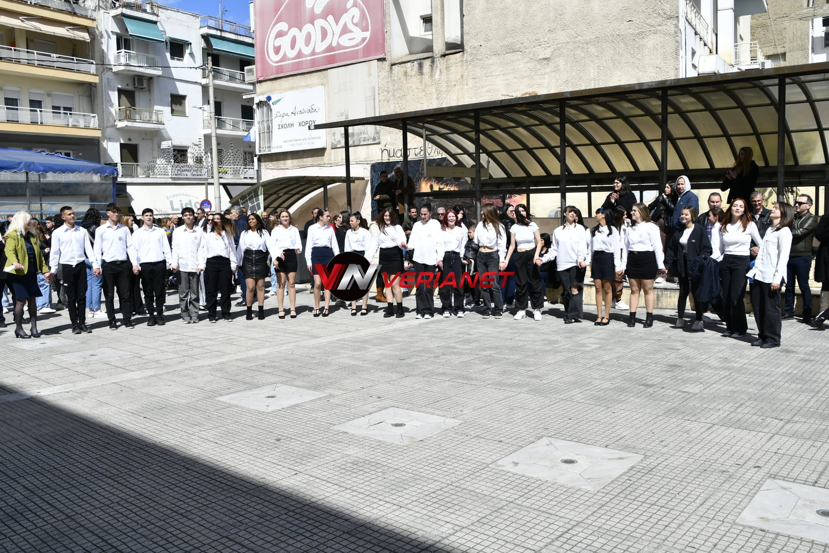 Μαθητές του σχολείου, συγκεντρώθηκαν στην πλατεία Δημαρχείου, χόρεψαν, συγκίνησαν τους παρευρισκόμενους, αποσπώντας το θερμό χειροκρότημα του κόσμου.