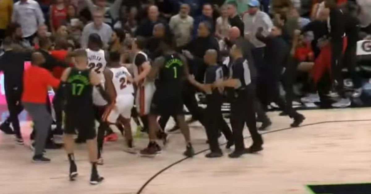 Ο Νάτζι Μάρσαλ πήγε να ζητήσει τον λόγο και ο Τζίμι Μπάτλερ τον έσπρωξε και η φωτιά άναψε άμεσα. Ο Μάρσαλ έπιασε από τον λαιμό τον φόργουορντ των Χιτ και η κατάσταση ξέφυγε και στο… ματς μπήκαν και οι αναπληρωματικοί.