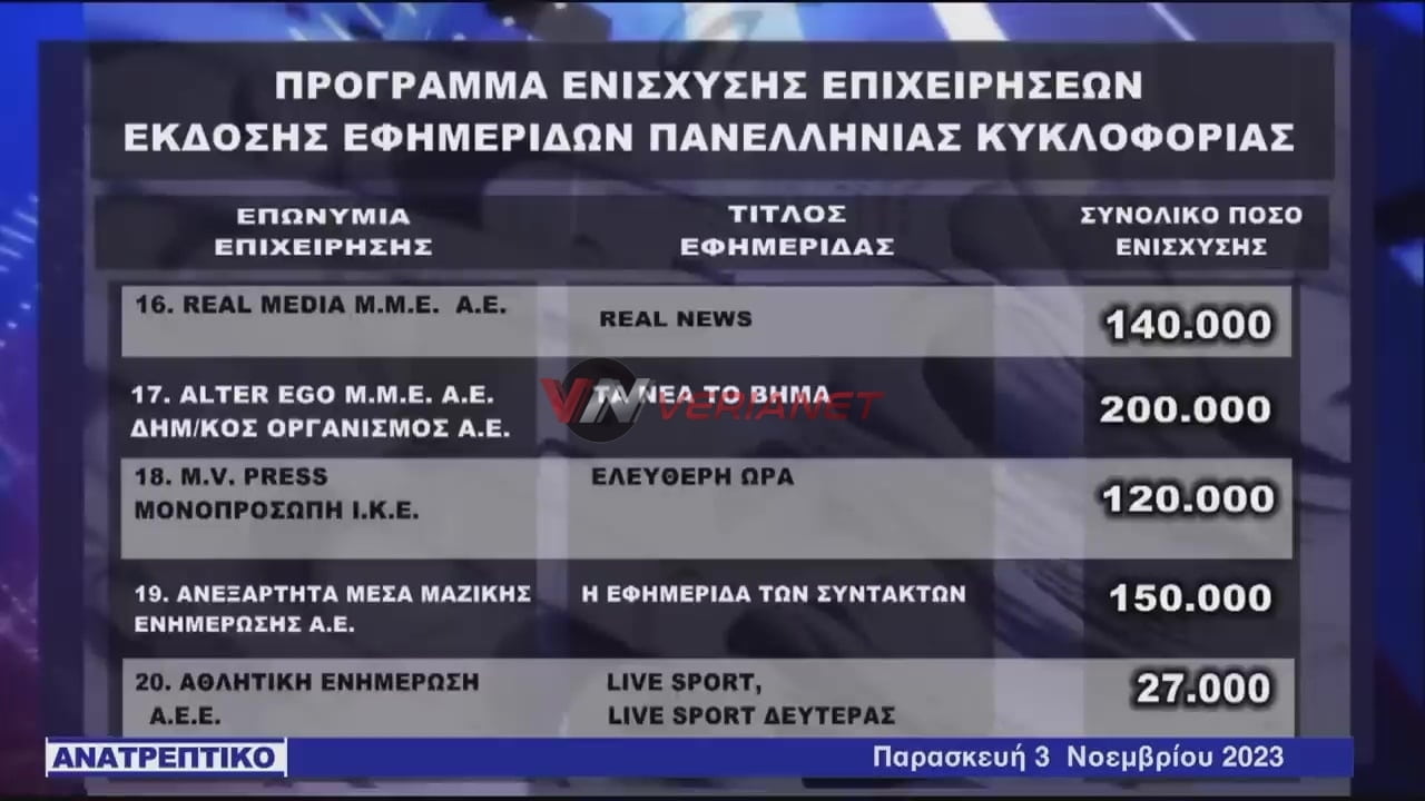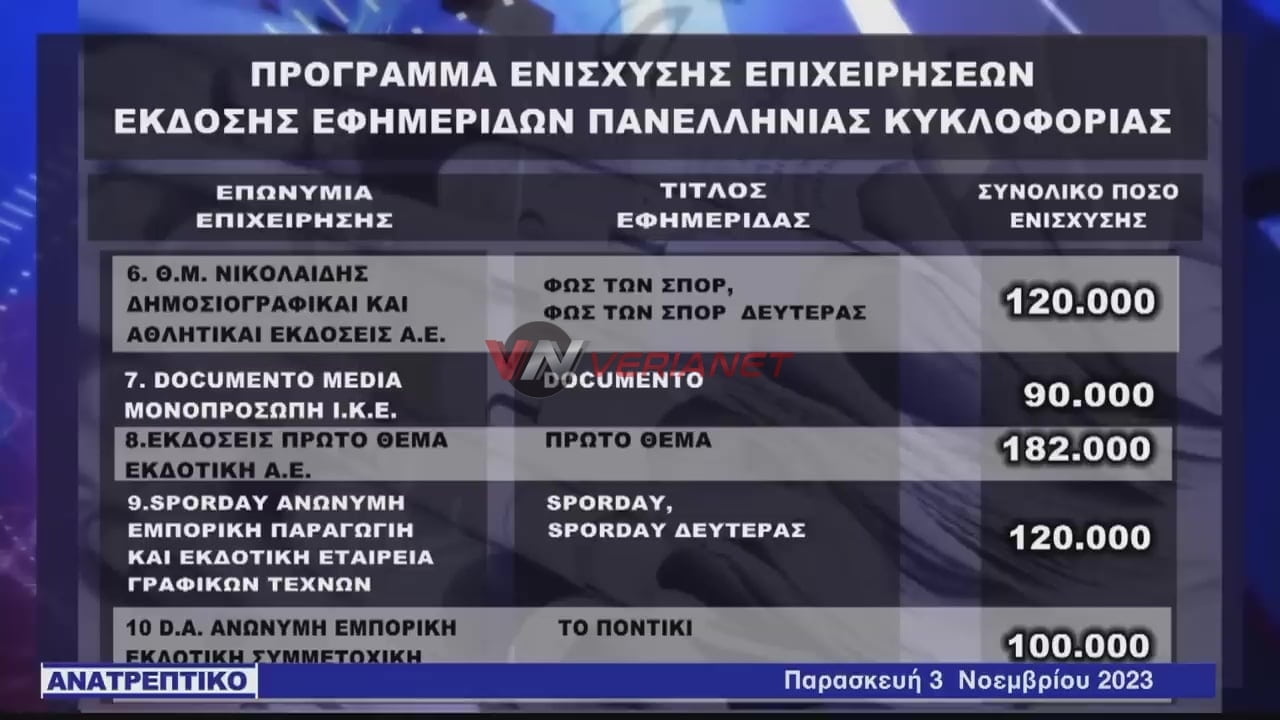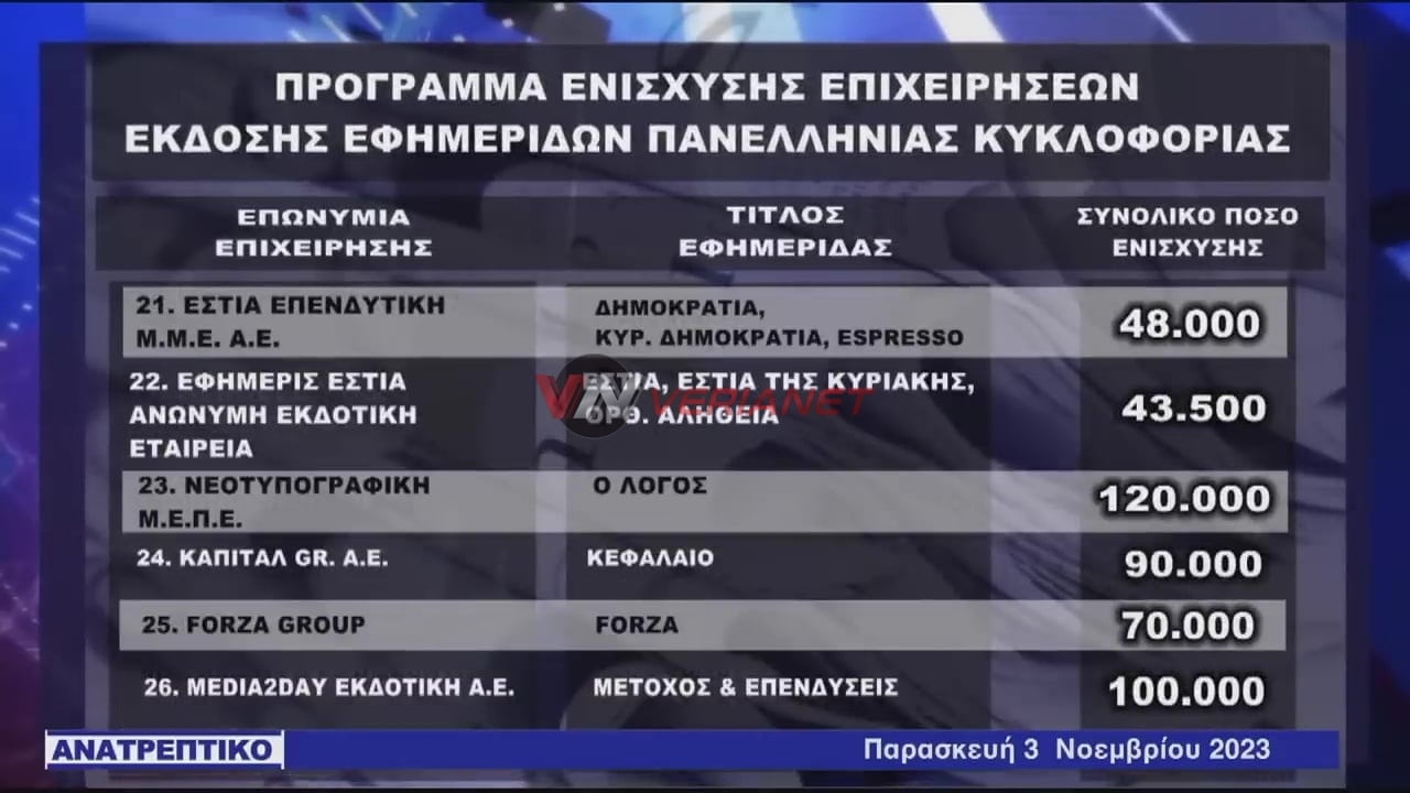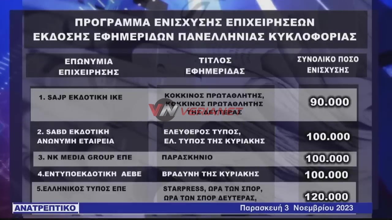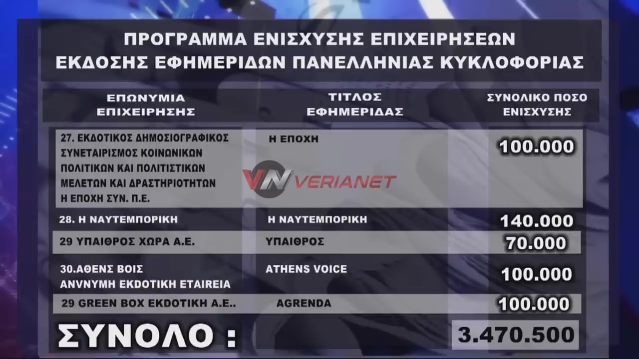 Verianet > News > Ειδήσεις > Ελλάδα > Χρήμα σε εκδοτικά συγκροτήματα και προς (φιλοκυβερνητικές και «αντιπολιτευόμενες») εφημερίδες – «Αυγή» και «Ριζοσπάστης» στη λίστα της χρηματοδότησης