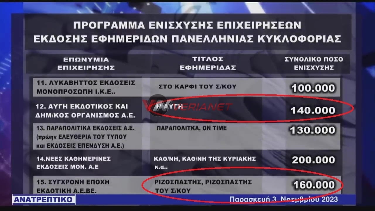 Χρήμα σε εκδοτικά συγκροτήματα και προς (φιλοκυβερνητικές και «αντιπολιτευόμενες») εφημερίδες – «Αυγή» και «Ριζοσπάστης» στη λίστα της χρηματοδότησης